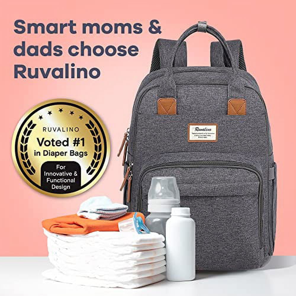 RUVALINO Diaper Bag Backpack – Large Multifunctional Travel Bag (Dark Gray)