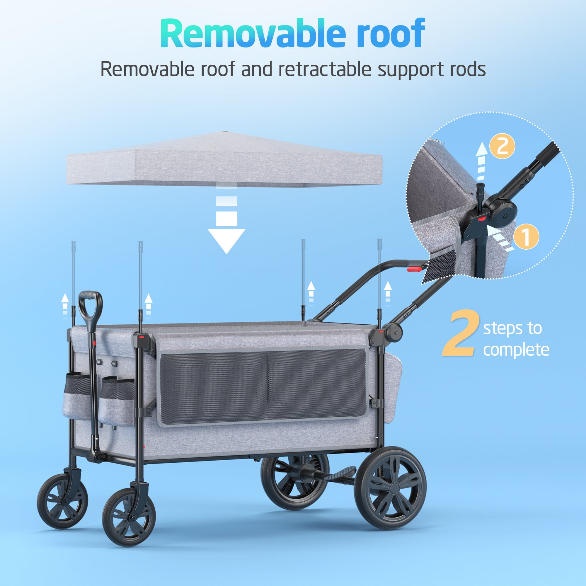 SACVON All-Terrain Stroller Wagon for Toddlers with Canopy, Parent Organizer, Adjustable Handlebar, 2 Cup Holders