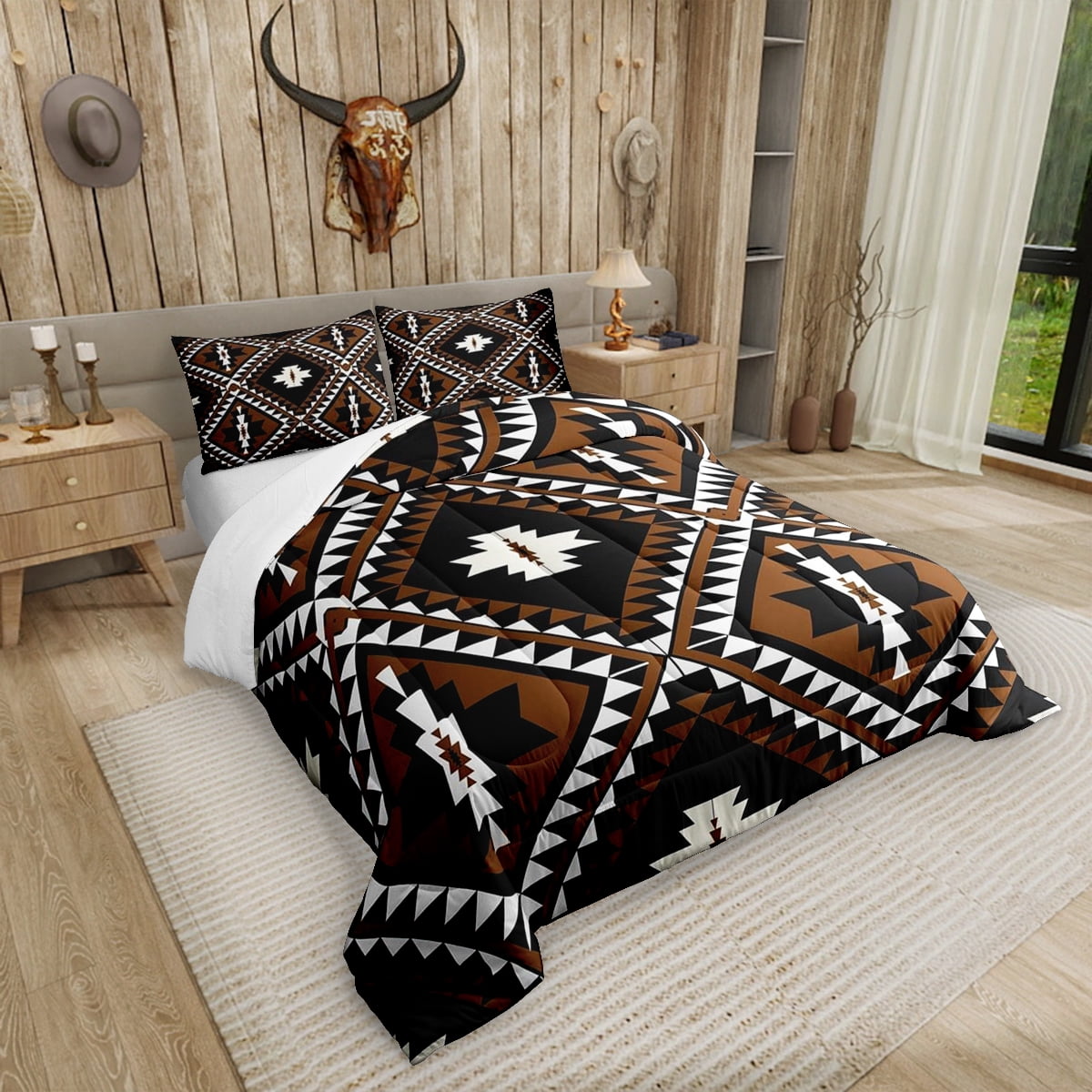 Rustic Western Twin Size Comforter Set For Men,Southwestern Aztec Bedding Set Bohemian Quilt Comforter Ethnic Mexican Geometric Diamond Duvet Insert Brown Black White Farmhouse Room Decor 2 Pcs