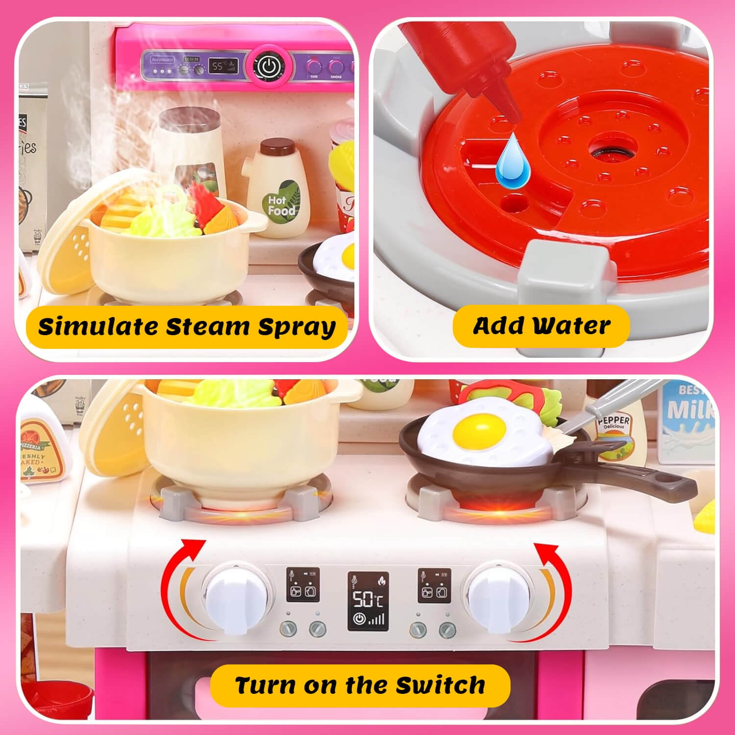 RUVINCE Kids Kitchen Playset, Play Kitchen Set with Sound & Light, Cooking Stove with Steam, Toy Sink,Play Food Toy and Kitchen Accessories for Pretend Play, Kitchen Toy Set for Toddler Girls