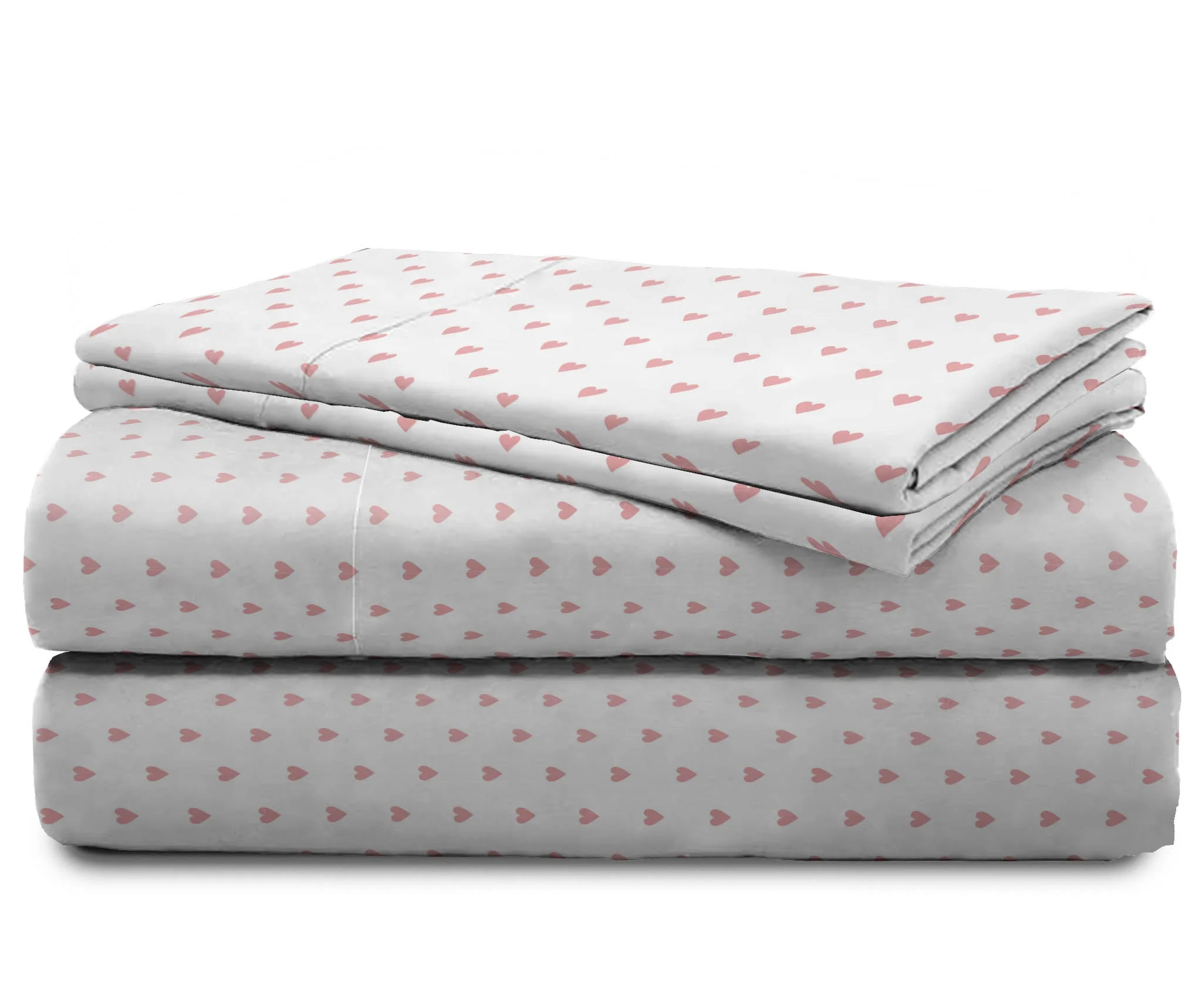 Saturday Park Hearts 100% Organic Kids’ Cotton Sheet Set, Queen