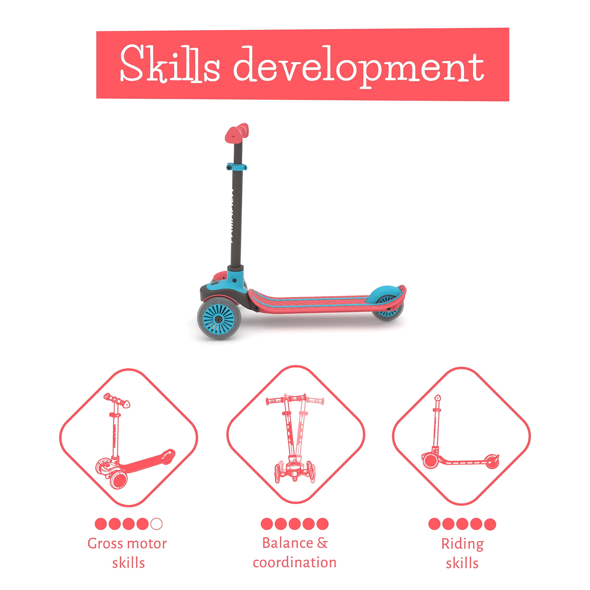$38.69Scotti is our Chillafish interpretation of the classic 3-wheel scooter. Scotti lightweight scooter for kids age 3 and up is a re-invention of the lean-to-steer scooter, featuring our signature and stylish twintip deck with integrated footbrake. The handlebar comes off in a snap without tools so you can easily take Scotti along to friends or to the park. Adjust the height to suit small kids and tall friends – the handlebar can adjust from 52cm to 73cm (from the ground). The high quality ABEC-5 wheels make you roll like you’ll never stop and the comfy handgrips feel like you’ll never want to let go. The deck is lightweight yet strong, for kids and adults up to 50kg (but we tested higher :-)). Scotti, lightweight, simple, stylish fun quality by Chillafish. Play Longer. Comes fully assembled in the packaging, just snap-in the handlebar and ready to roll ! Recommended age: 3+ / Recommended weight: max 50kg