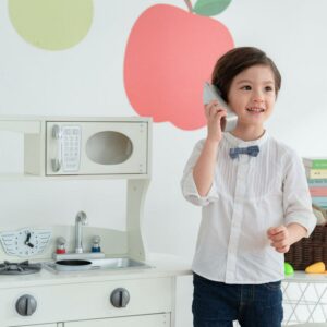 $60.19This charming wooden kitchen playset blends vintage vibes with modern playability, featuring a white and black spotted curtain below the sink and a retro Mint green color. A handy shelf keeps ingredients and cookware within reach, utensils or dish towels can hang on the convenient pegs on the side, and a spacious cabinet stashes away play food and dishes. Faucet handles turn and oven dials twist and click. This kitchen has adjustable legs that can rise as your child grows.