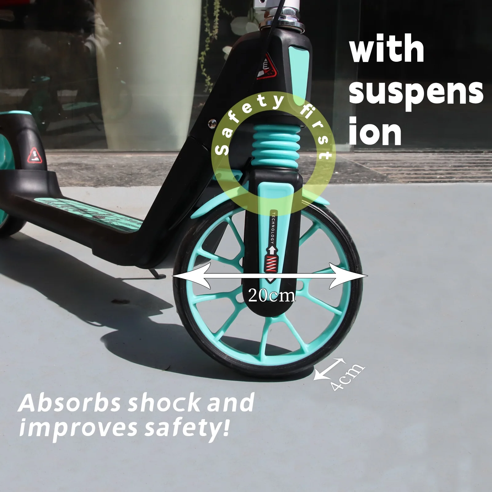 $45.15Safety features: The scooter has a rear brake function, so you only need to touch one foot to the rear wheel to stop smoothly when using it. Folding: The scooter folds up by pulling the folding button, making it compact and portable for carrying on your back or keeping in the car. Height Adjustable: The three-position adjustment function makes the scooter suitable for children from 8 years old, teenagers and adults. The three positions have a height of 35″, 37″ and 39″ respectively. Wide pedals: The pedal size is 4.6 inches * 21 inches, the wider pedal size is more stable to ride. Weight capacity is 220 lbs. The support feet are designed to make parking easier, both indoors and outdoors, without any leaning.