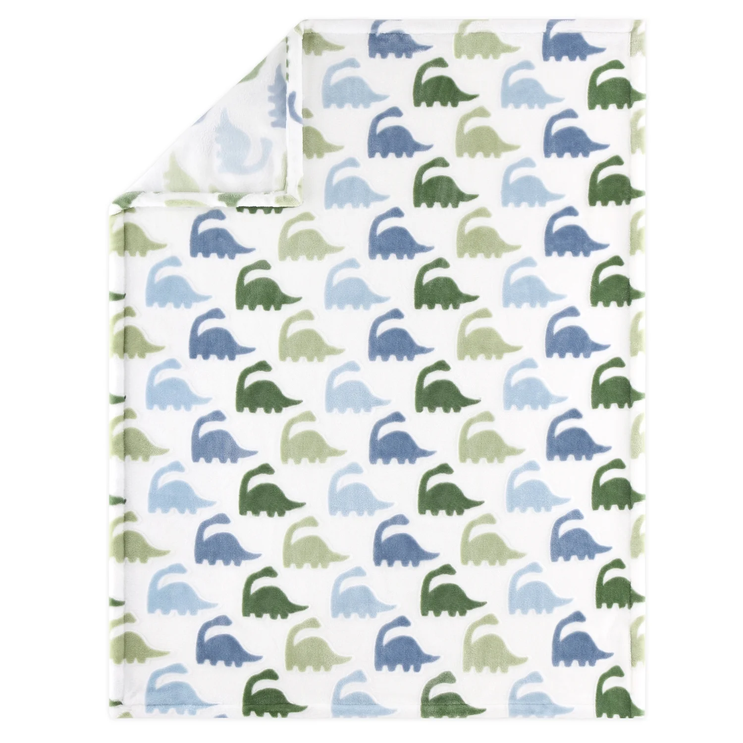 $51.59Bring the adventure indoors with this 5 piece Blue Dino baby bedding set from The Peanutshell. Our generously sized 32” x 41” soft and cozy quilt features three blue and green dinosaur friends with geometric landscape details. Two fitted crib sheets are included in this 5 piece nursery set. Both are a perfect universal fit, designed for a standard 28” x 52” crib mattress with snug fitting all around elastic. One sheet features multicolor greens and blues of dinosaurs, the second fitted sheet print features a linear parade of stegosaurus and triceratops on a light blue background. Our 30” x 40” burnout velour blanket with blue and green dinosaur silhouettes is the perfect accessory for stroller walks or comfy cuddles. The blue dash print bed skirt rounds out this wild look.