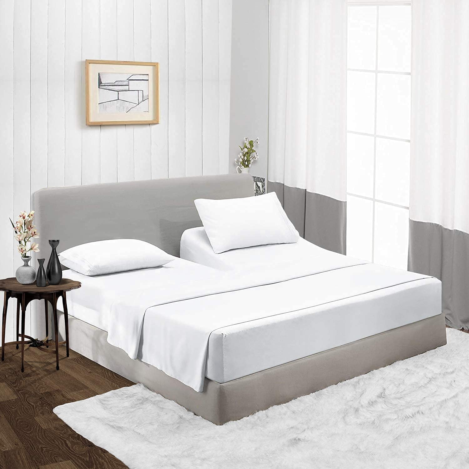 Top Split King Sheets Sets for Adjustable Beds – 800 Thread Count- 100% Egyptian Cotton 4Pcs Bed Sheets, Fits Upto 18” Inch Deep Pockets, White Solid – Split Down 34 inches from The top
