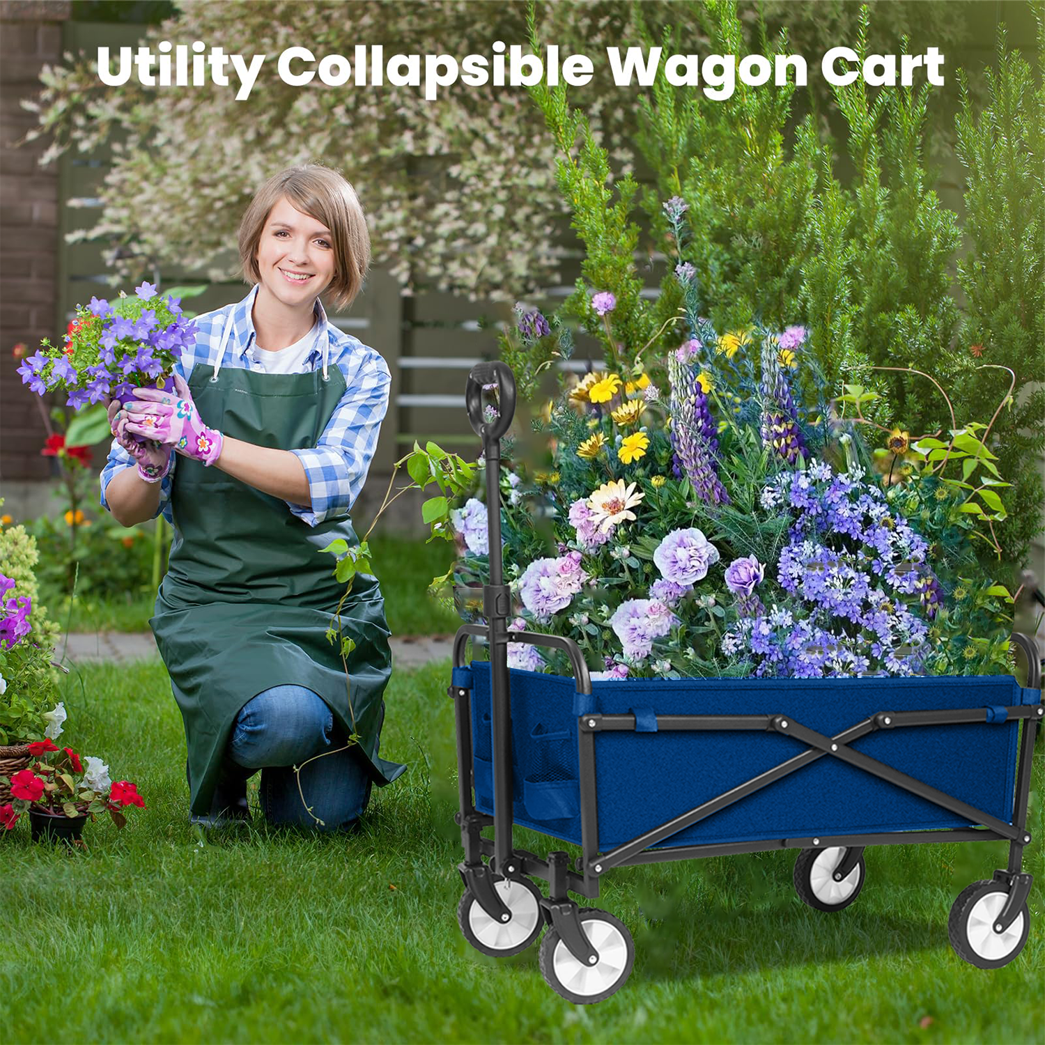 UPGO Collapsible Foldable Wagon, Beach Cart Large Capacity, Heavy Duty Folding Wagon Portable, Collapsible Wagon for Sports, Shopping, Camping