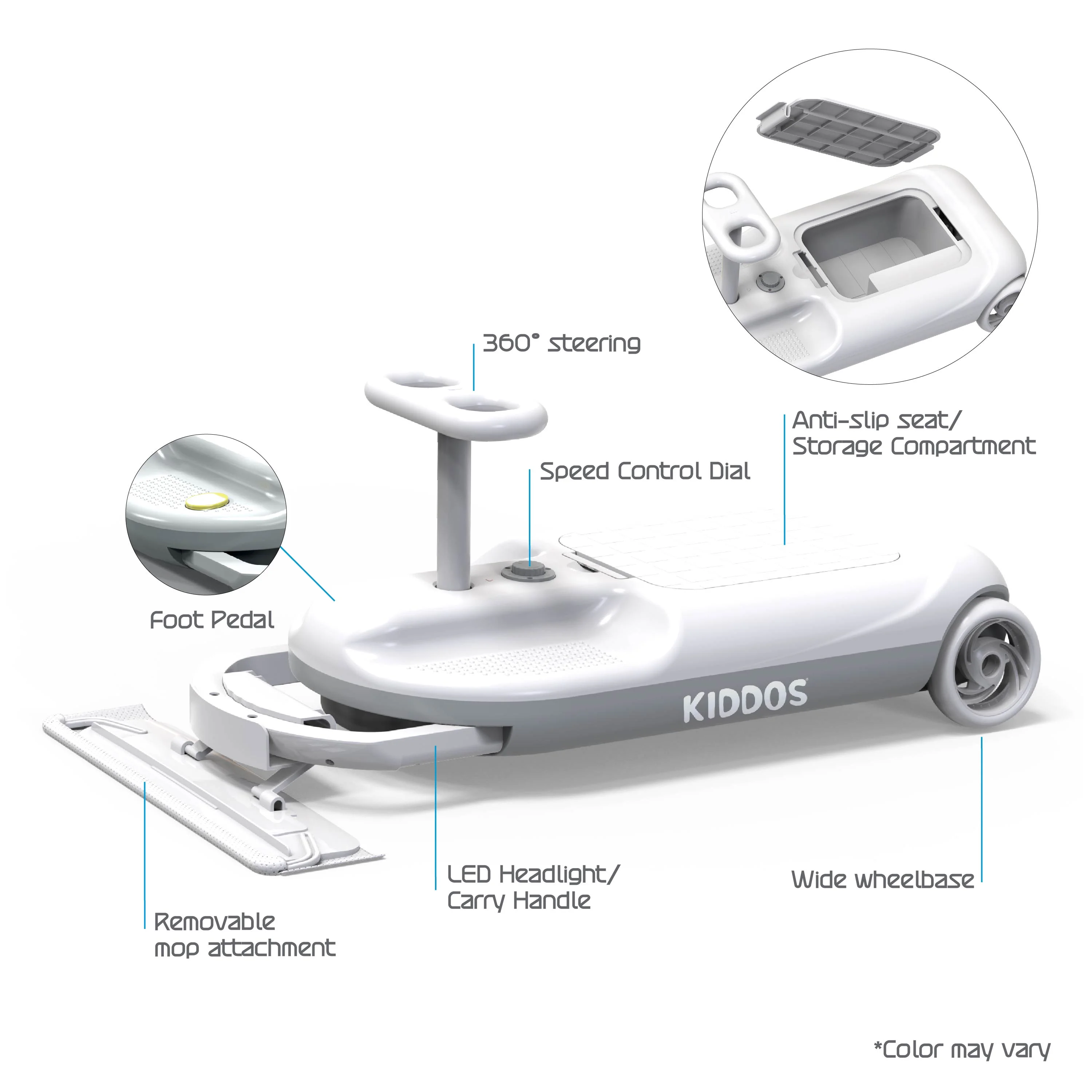 Tzumi Mop On-the-Go Kart 2 in 1 Electric Sweeper Floor Cleaner Cart for Kids Ages 3 and Up