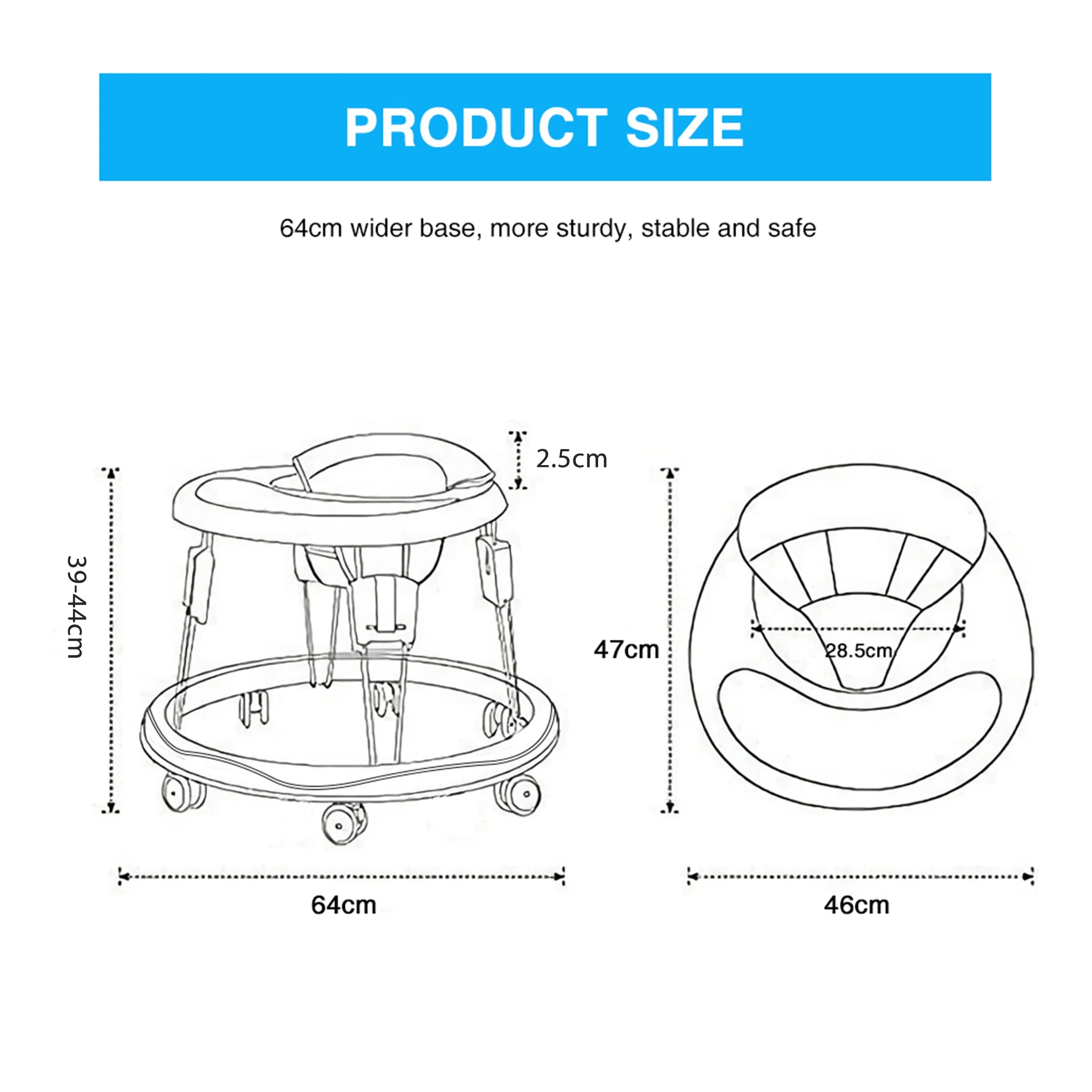 $51.59Includes:1 * Baby Walker.7 * Detachable Wheels (One Extra Wheel for Replacement).1 * User Manual(5 Languages – EN/DE/FR/ES/IT).1 * Safety Belt.1 * Plastic Bag. UBRAVOO ZM01 PU Black Cushion for Baby boys girls without unisex difference from 6 to 18 months who can sit unaided but weigh 15KG at maximum. Folds up Compact & Slimline for Easy Storage, Only 11.5cm High. All New Materials Consisting of :Seat Pad – Faux Leather / Flax. Wheels – PVC. Bracket – Steel + ABS. Car Body – Polypropylene. Cleaning & Care Instruction : Oil all removable parts regually. Heavy dirty spots clean with non abrasive cream. Clean all fabrics with warm water and mild soap. Highlights :Silent & Smooth Universal Wheels. Slider Design for 5 Height Adjustment, Grows with Your Baby to Prevent O-legs. Metal Pin Design for Seat Pad Adjustment. Protective Sleeve Covered to Prevent Foot Pinch. Safety Belt Tied to Baby Waist & Seat, Prevent Baby from Slipping or Falling off Baby Walker.