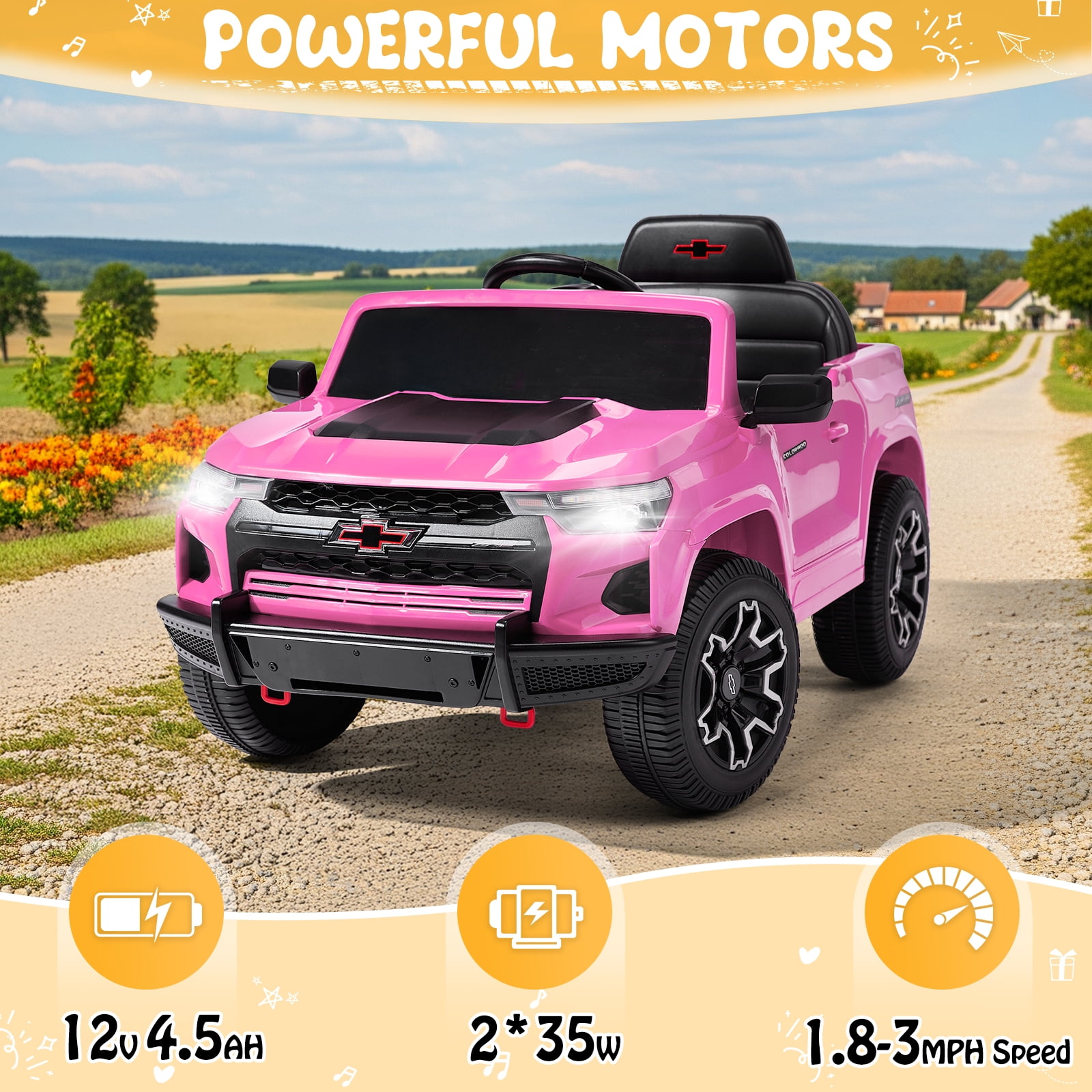 UBesGoo 12V Licensed Chevrolet Colorado Electric Ride on Car Toy for Toddler Kid w/ Remote Control, LED Lights, Pink