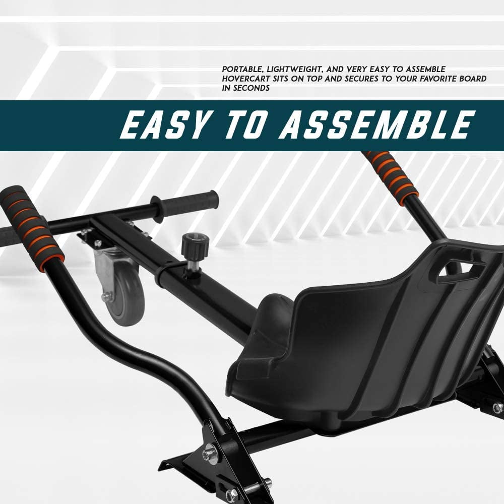 $52.32Great Gift Idea – If you are looking for the gift idea for your kids, this is an amazing gift for holidays or any special occasions for your loved ones. You and your family will enjoy the ride outdoor with this Hoverboard seat attachment. Safe for Kids – This Hoverboard kart provides a safer way of riding the Hoverboard, which transform your Hoverboard into go-kart, it protect your kids and reduce the chance from falling. The Hoverboard seat attachment allows kids to drive it without fear of falling down. Learn Quickly – The self-stabilizing scooter seat attachment provides you with sheer driving pleasure, take about 10-15 minutes to learn, you will figure it out how to ride with this go cart very quickly. When you get used to maneuvering your hovercart you will be happy with full control of the Hoverboard attachment. Comfortable – The hover kart features a durable ergonomic seat and adjustable frame length for different size of riders. The soft touch foam padded handles makes the driving steering more comfortable.
