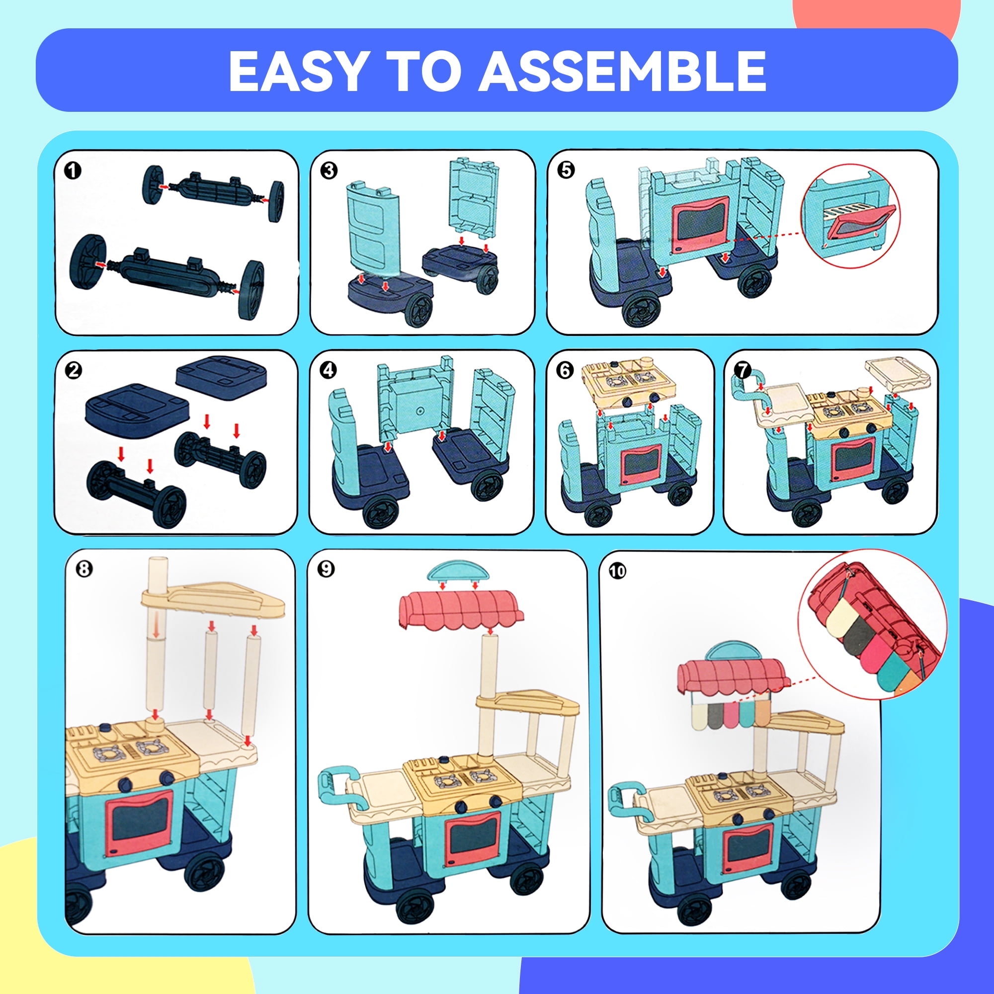 $171.99Original price was: $171.99.$29.23Current price is: $29.23.The YCFUN play kichen has a variety of interactive functions. The wheel of the food cart is moveable. The pretend play cashier has rotary button. There are various play foods, such as burgers, hotdogs, chips, and pizza. The play food set for kids kitchen provides hours of screen-free fun time for kids childs boys and girls. Enjoy the cooking fun with our kitchen set.