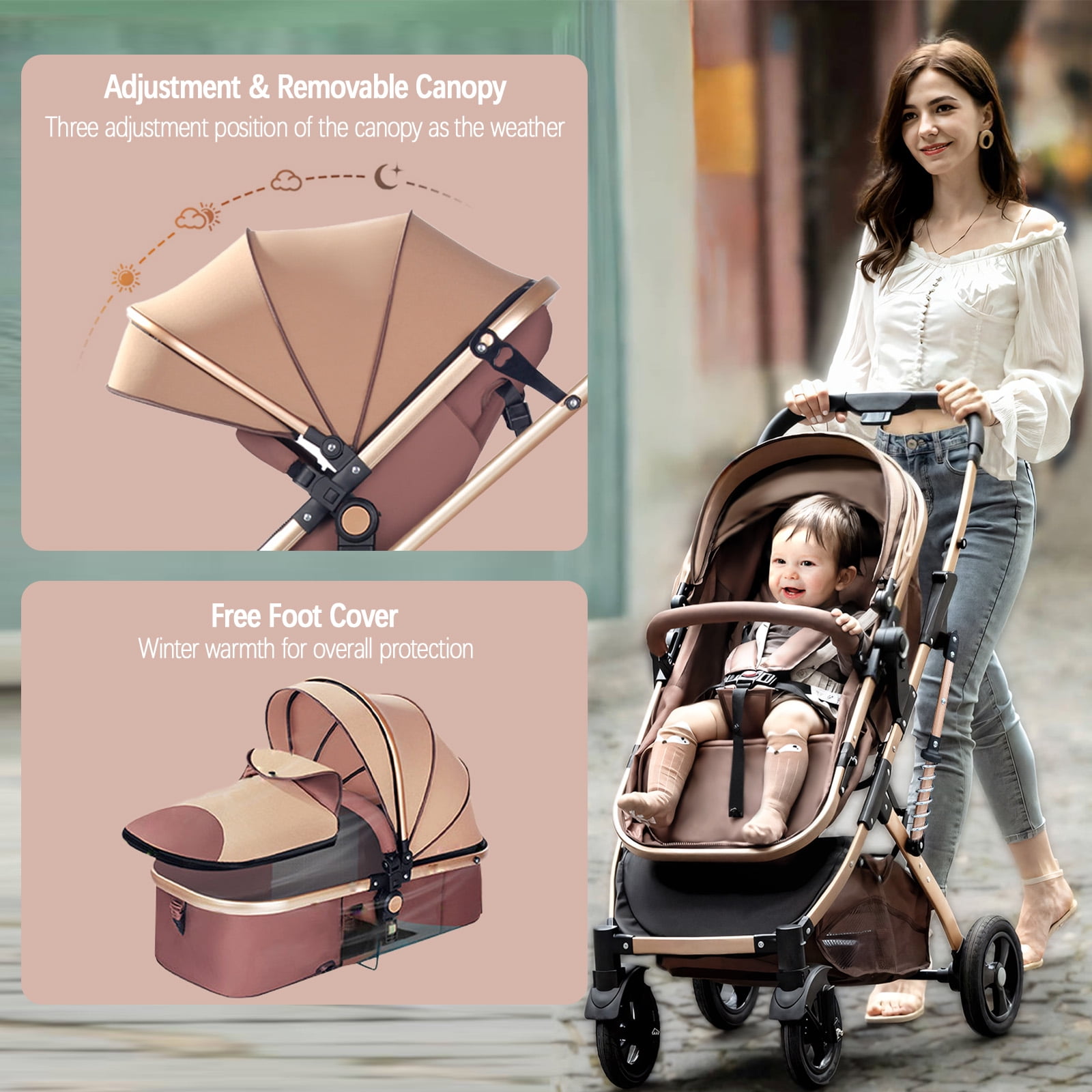 $102.33Let’s get out and enjoy those bright beautiful afternoons together. Yadala baby stroller can achieve baby’s exploration of the amazing world comfortably and safely. The UPF50+ canopy and foot cover can provide the best rest environment for the babies in any weather conditions. With an upgraded double damping system, you don’t have to worry about bumps on all kinds of roads. The foldable and compact stroller makes your travel more easy. The reversible and Adjustable design provides convenience for all stages of the baby’s life from 0-36 months of age. The Yadala stroller is also a great baby shower gift if you need to send that to your family or friends.