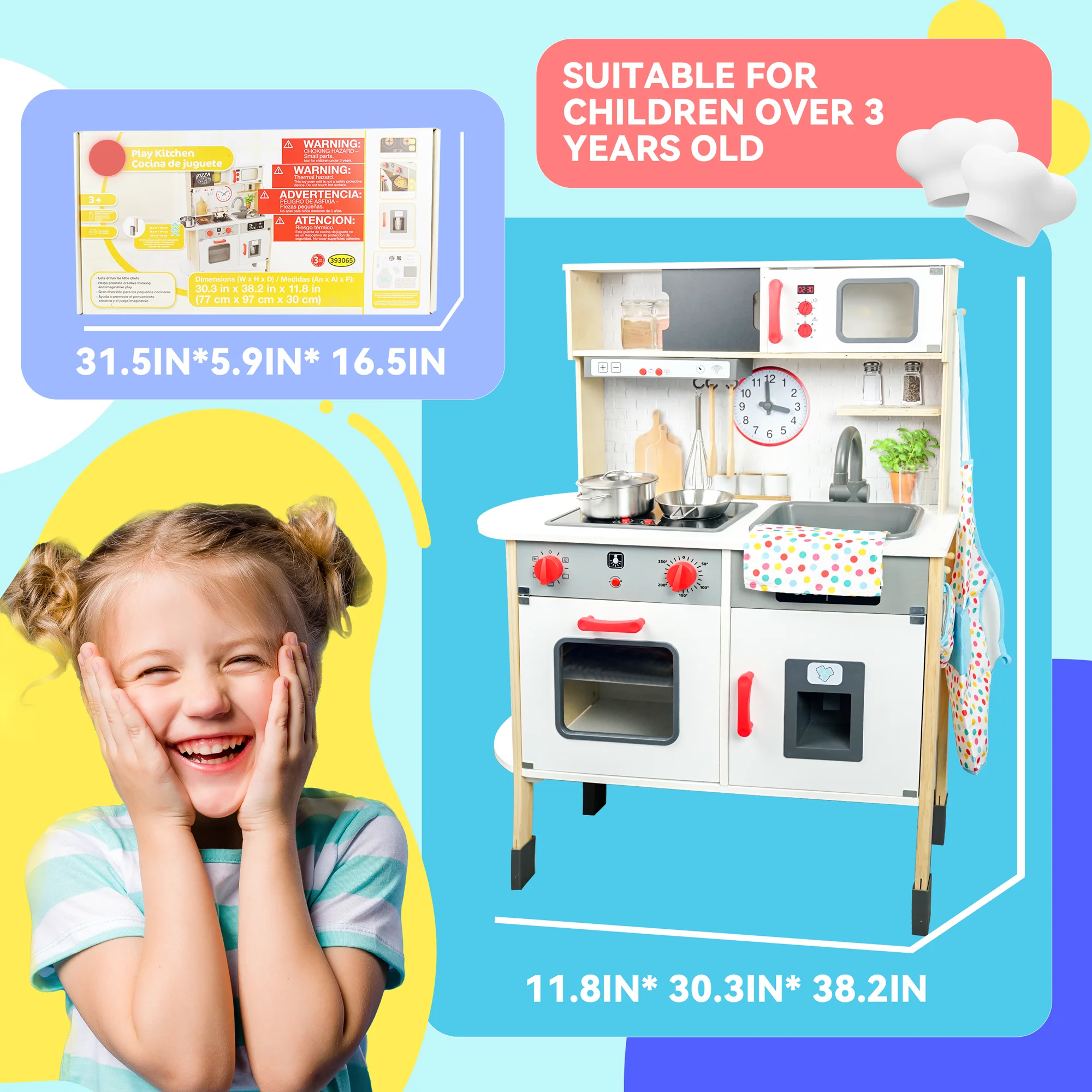 $214.99Original price was: $214.99.$44.71Current price is: $44.71.Time to enjoy the pleasure of pretend play cooking games. YCFUN wooden kitchen play set is tailored for little boys and girls. The kitchen set for kids has mordern design and imitate the real kitchen set. The kids kitchen play set includes a stove, sink, oven, and ice machine. There’re many interative functions for the play food set for kids kitchen await kids’ exploration.