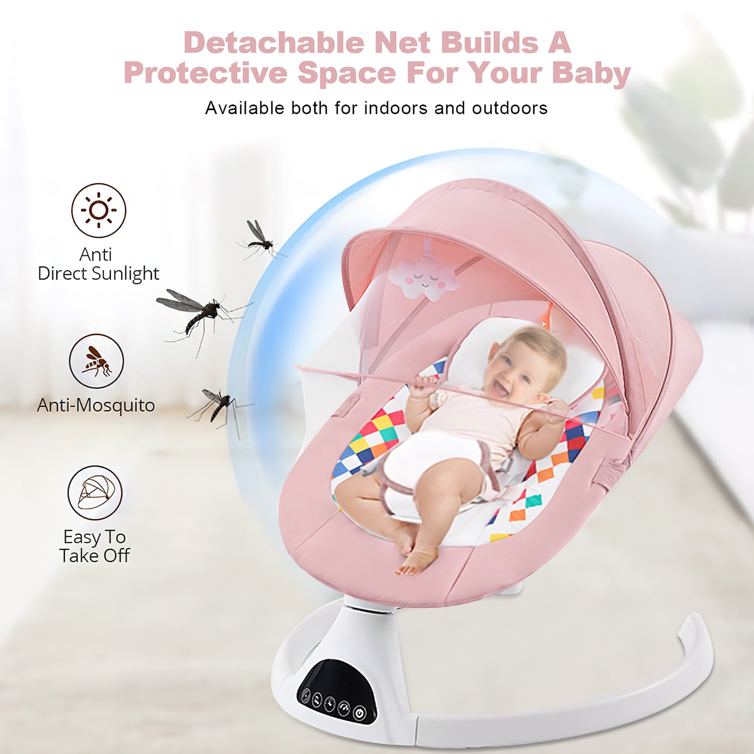 $60.19Site Description: Yadala updated baby swings for infants use a supine design, so that the baby’s head and feet are positioned just right, and the baby’s center of gravity falls on the cushion to ensure the safety of the baby. The more lightweight design and quick fold provide an ideal choice for travel. Whether going indoors or outdoors, the baby bouncer powered by a USB cable, and 4 pieces of batteries can ensure babies always have a familiar and comfortable resting space, giving mothers’ arms a rest and bringing health and happiness to babies aged 0-12 Months. The Yadala infant swing is also a great baby shower gift if you need to send that to your family or friends. Specifications: Brand: Yadala Model No: CR001S Age Group: Baby, Infant Age grading: 0-12 months years old Wireless technology: Batteries Control Timer: 8 minutes/ 15 minutes/ 30 minutes Power supply: USB, Batteries, Power Bank Color: Pink Size(Open): 23.6*20.5*22.8 Inches Size(Fold): 23.6*5.3*25Inches Product Weight: 8 lbs Load Capacity: 6-44lbs Package includes: 1 x Electric Baby Swing 1 x Mosquito net 2 x Toy 1 x USB Cable 1 x Instruction