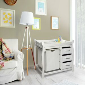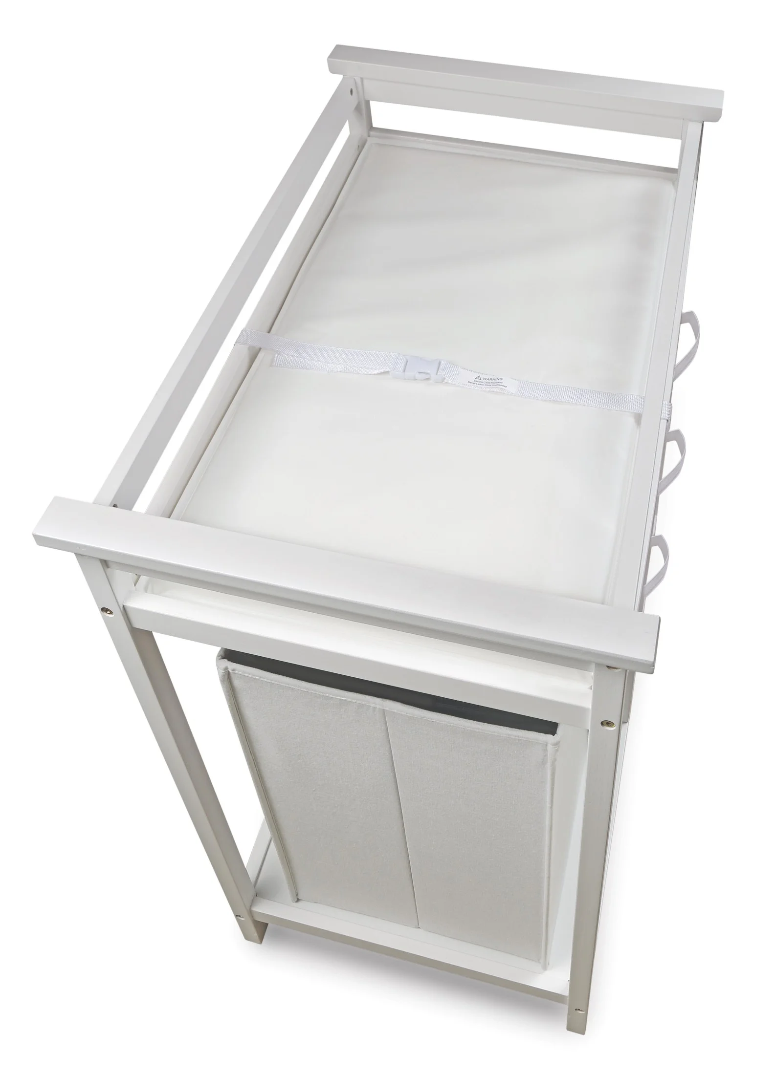 Badger Basket Modern Baby Changing Table with Hamper and 3 Baskets, White, Includes Pad