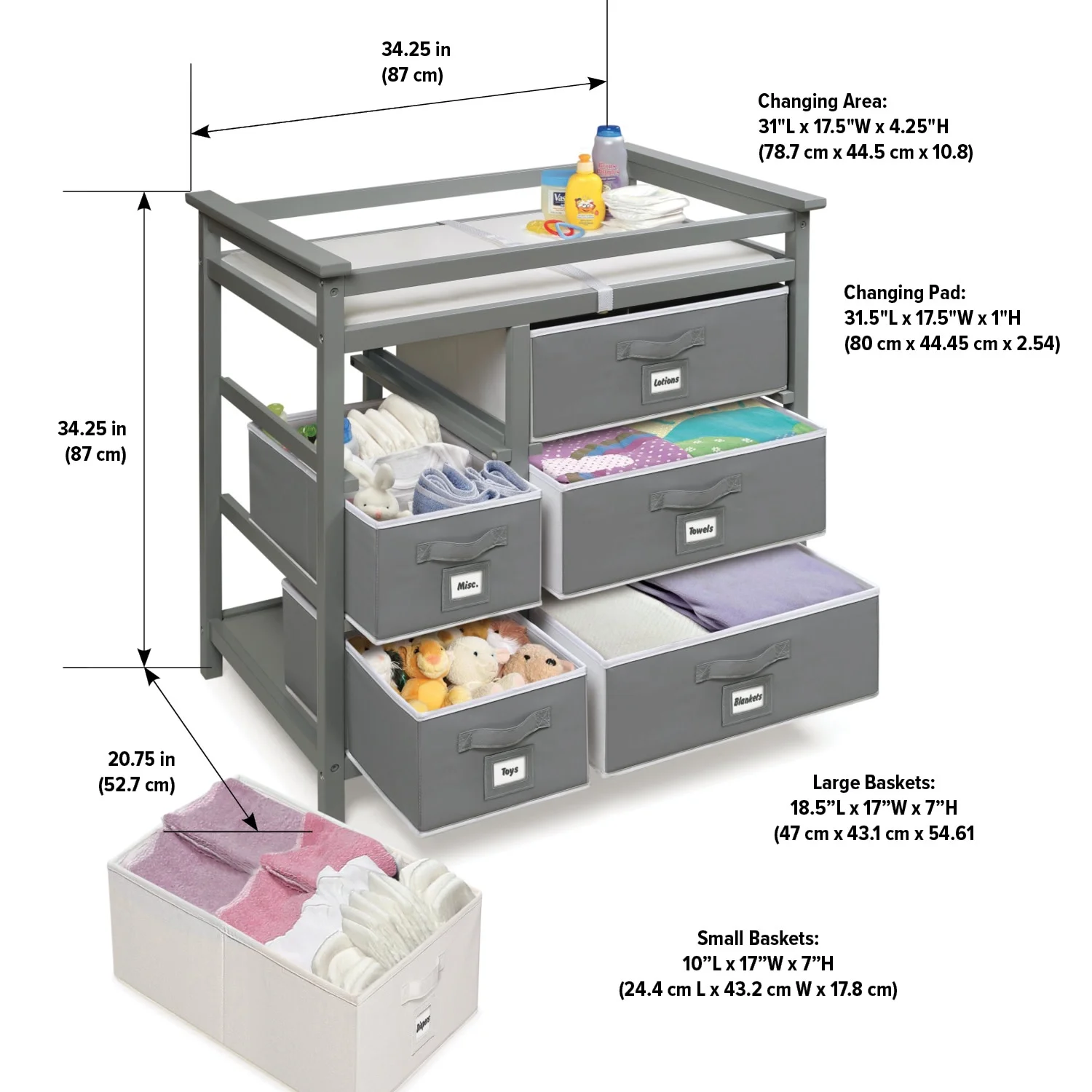 Badger Basket Modern Baby Changing Table with Six Baskets – Gray