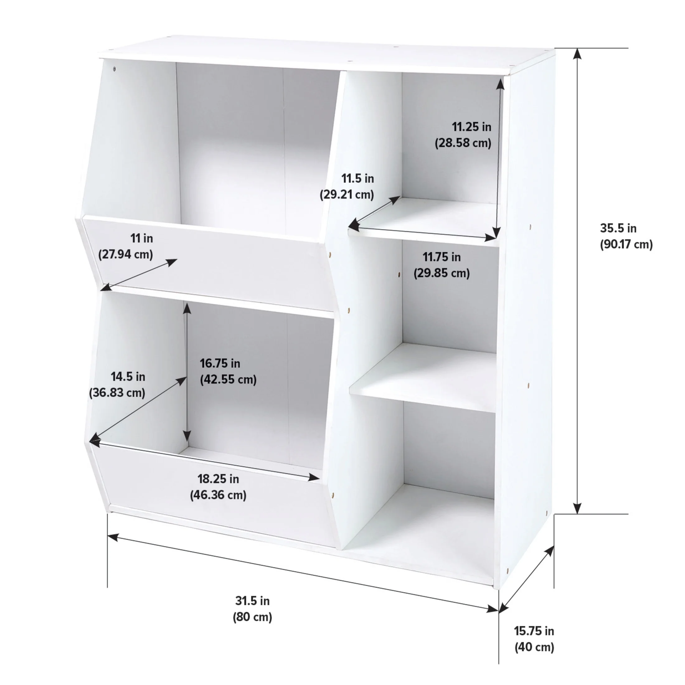 Badger Basket Side-by-Side Children’s Combo Bin Wood Toy Storage Bookshelf with 5 Cubbies 7.7 Cu ft. – White