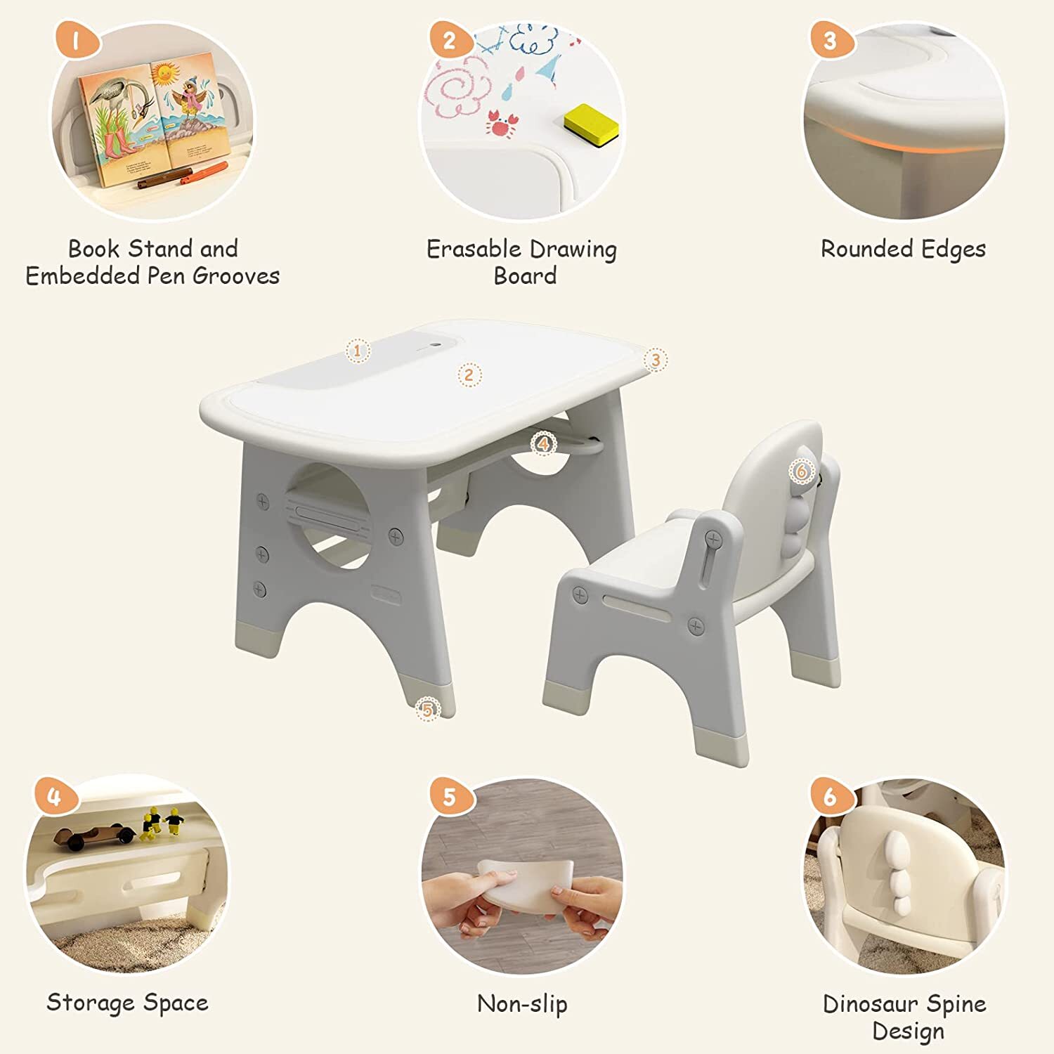 BanaSuper Toddler’s Drawing Table and Chair Set 2-Piece Grey Activity Table