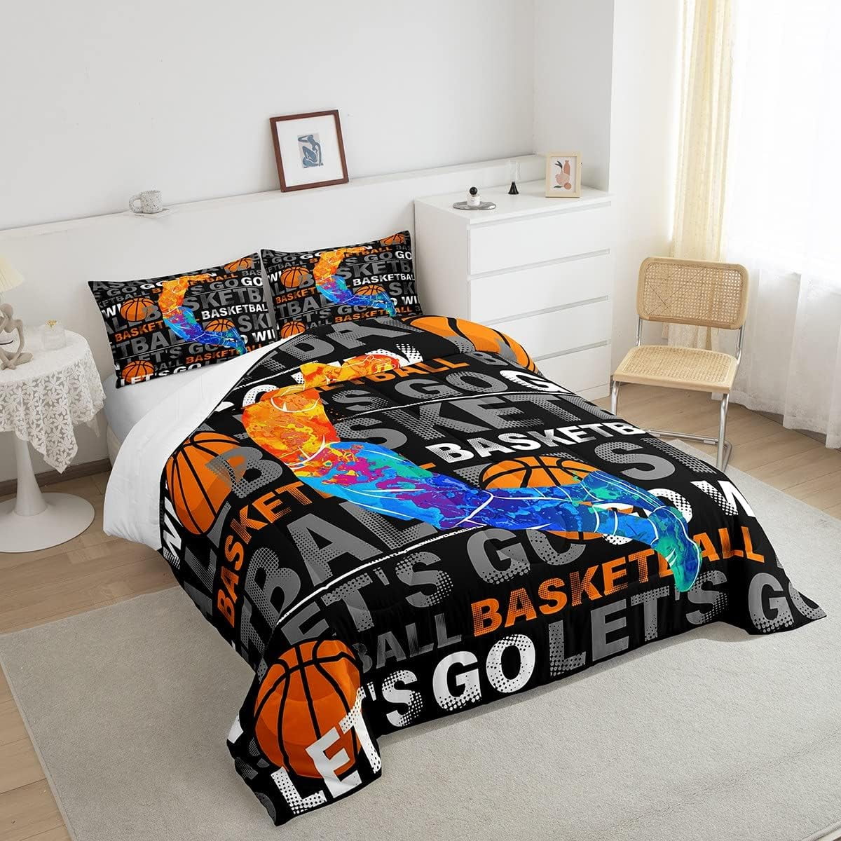 Ball Game Duvet Insert Twin Size,Basketball Bedding Set for Teens Man,Modern Balls Player Comforter Set European Sport Down Comforter for Young Man Bedroom Decor