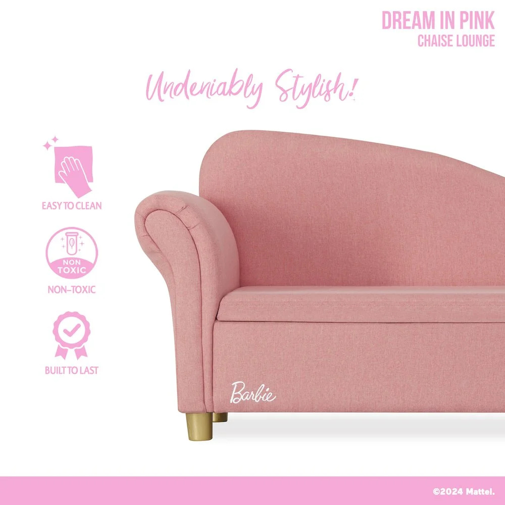 $138.96Original price was: $138.96.$96.31Current price is: $96.31.Are you ready to add a touch of whimsy and wonder to your little one’s world? Every day is a dream come true with our Barbie™ Evolur Dream In Pink Chaise Lounge – An empowering space for your fearless dreamer. With its raised backrest and trendy, sturdy gold legs, this chaise lounge is undeniably stylish. Wrapped in soft, durable linen upholstery in the dreamiest shade of pink, the Dream In Pink Chaise Lounge is as comfy as it is chic. It’s built to withstand endless adventures, tea parties, and playdates. Lift the seat to reveal a hidden treasure trove of space. Perfect for stashing away those dolls or simply keeping the play area clutter-free. Worried about spills and messes? Don’t be! This lounge is a breeze to assemble and clean, and it’s made with non-toxic materials, ensuring safe playtime. Rest easy knowing the Barbie Evolur Dream In Pink Chaise Lounge meets and exceeds both ASTM & CPSC safety standards. Product dimensions are 38”L x 17.7” W x 21.2” H, with a weight of 24.6 Lbs.