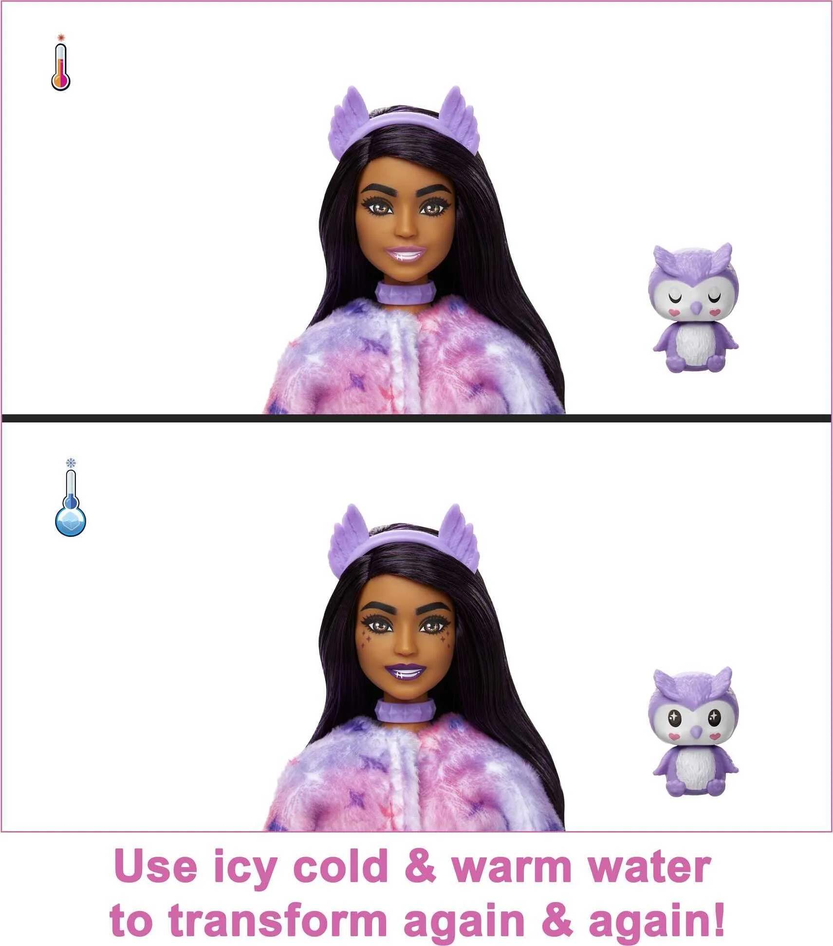 Barbie Cutie Reveal Snowflake Sparkle Fashion Doll with Owl Plush Costume, Mini Pet & Accessories