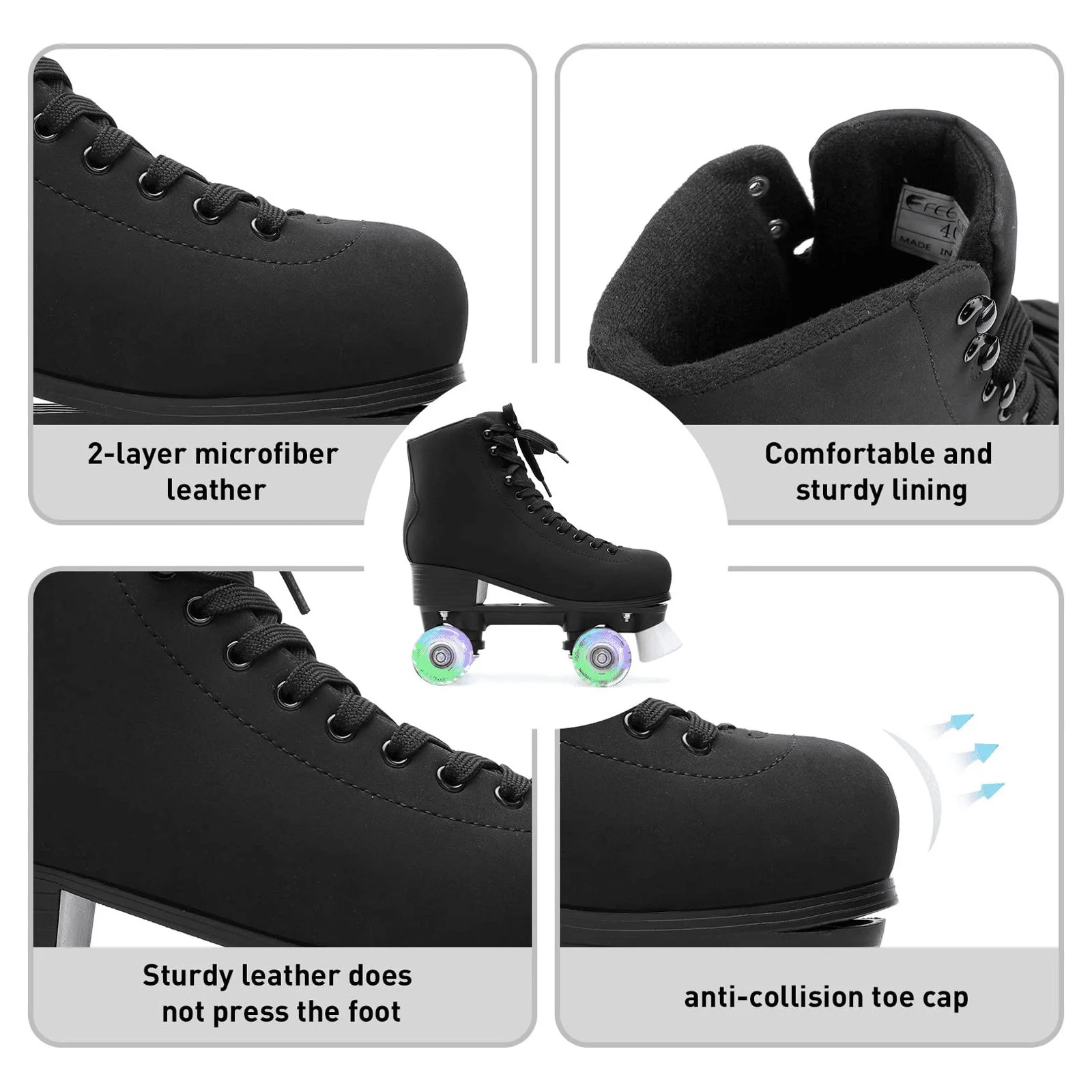 Barerun Women’s Four Shiny Wheels Double Row Quad Roller Skates for Adult Youth