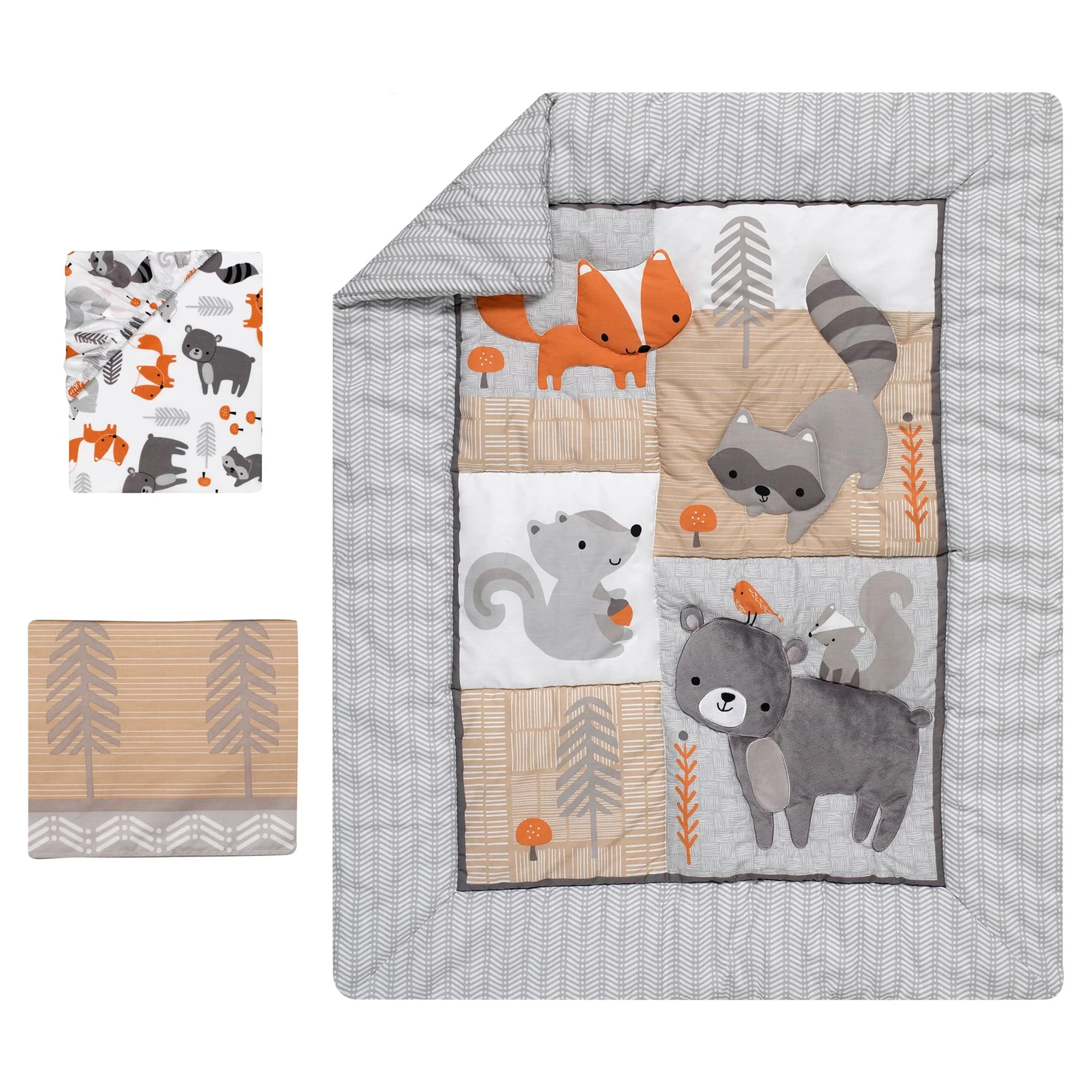 Bedtime Originals Acorn 3-Piece Crib Bedding Set – Gray, Animals, Woodland