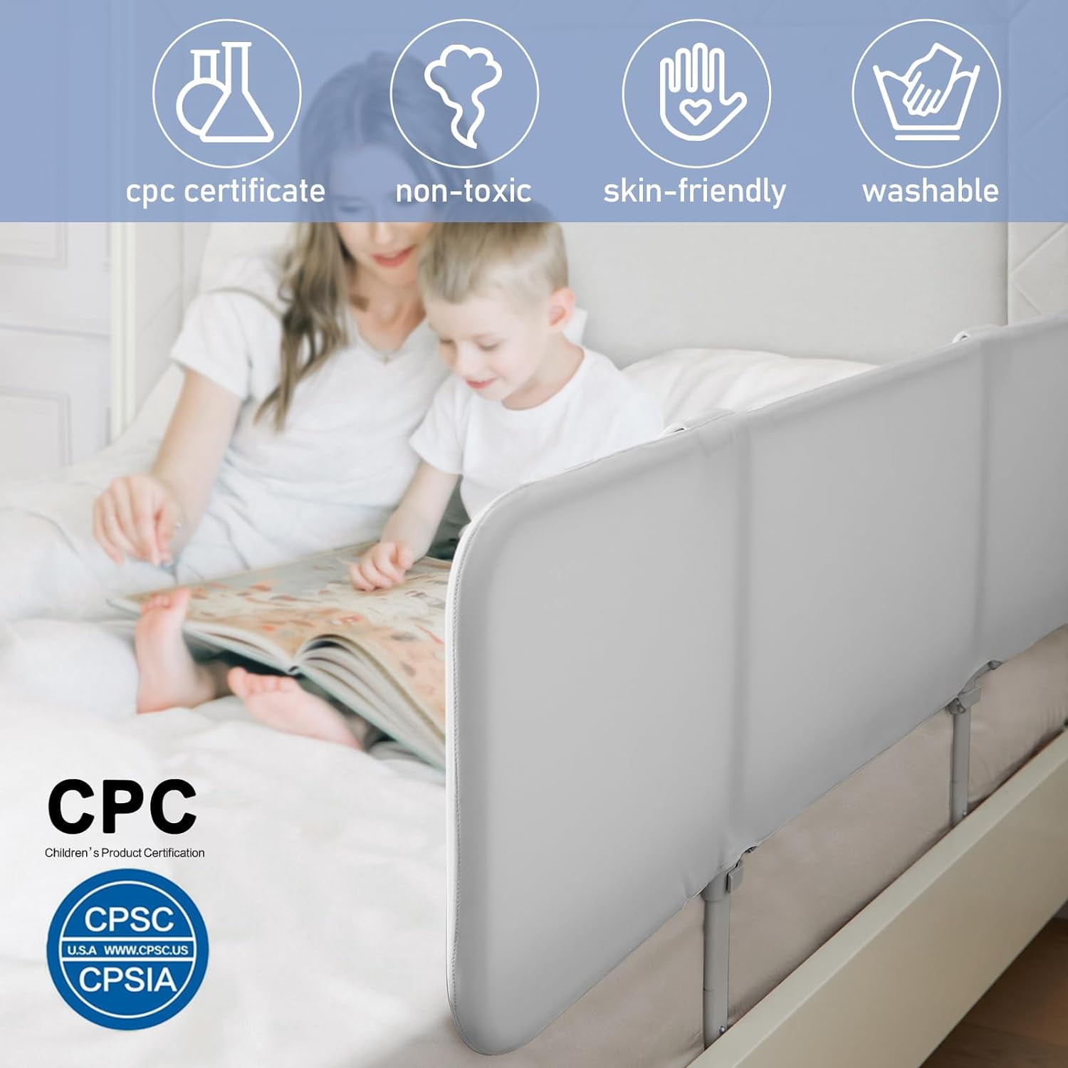 Bed Rails for Toddlers,Foldable Bed Rails for Travel,Safety Bed Rail,59inch,Grey