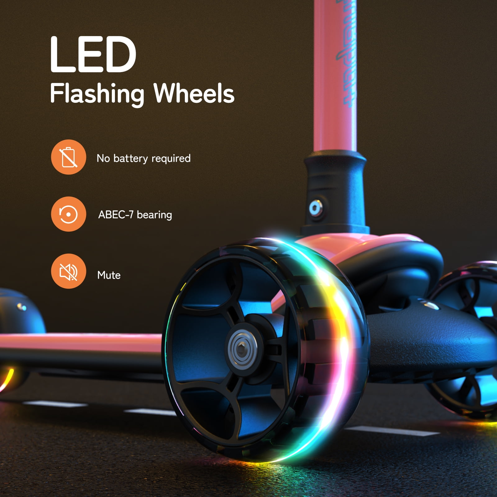 Beefunni Pink Sit-and-Scoot Scooter for Girls, Adjustable Handlebar Kick Scooter, Wide Anti-Slip Deck, LED Flashing Wheels, Rotatable Saddle, Ideal Birthday Christmas Gift for Kids 2-8