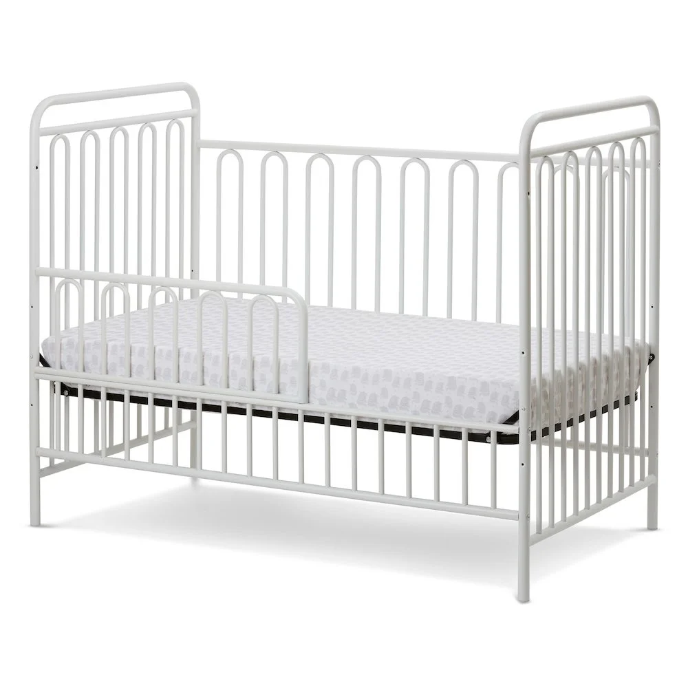 $392.15Original price was: $392.15.$326.79Current price is: $326.79.Trinity 3 in 1 Convertible Full Sized Metal Crib in Alabaster White The Trinity 3 in 1 full sized metal crib, in a classic hoop design in an Alabaster White textured finish, is a welcome addition to any room decor. Made with high quality steel and non toxic powder coated finishing techniques that easily stands up to years of repeated cleanings. The Trinity can later be converted from a crib to a toddler bed or day bed and all conversion parts are included with the crib. The metal spring mattress support high is adjustable to three positions and this crib accepts a 28” x 52” standard full size crib mattress which is sold separately and available through LA BABY. This crib is designed to the highest standards and meets or exceeds all C.P.S.C., (Consumer Product Safety Commission), CFR 1219 standards for full size cribs. This crib also passes all ASTM, (American Society for Testing and Materials), standards and each model is tested by independent laboratories for compliance with all regulations for both CPSC and ASTM standards.