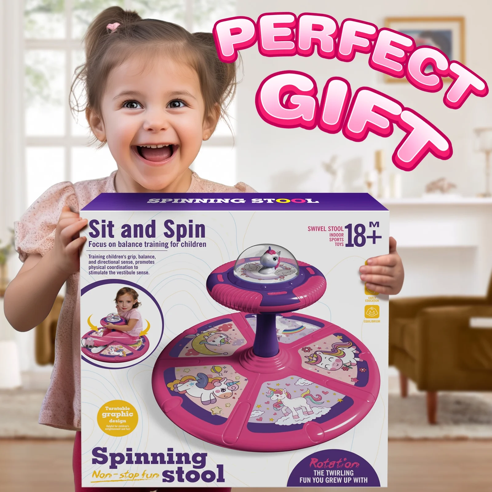 $62.77Original price was: $62.77.$51.59Current price is: $51.59.Time for Dinosaur, catchy tunes and classic Sit and Spin action! As kids 18 months and up whirl the Dinosaur Sit and Spin toy’s wheel, they’ll hear the music. This Light Up Sit and Spin musical toy offers the same spinning fun that’s provided generations of indoor, active toddler play. With an easy-to-spin design that can go fast or slow, your toddler controls the spinning speed. Kids 18 months and up can spin their sillies out, while the active play can encourage balance, coordination, motor skills—and perhaps even a post playtime nap! Kids can sit, spin, and snort themselves silly, again and again!