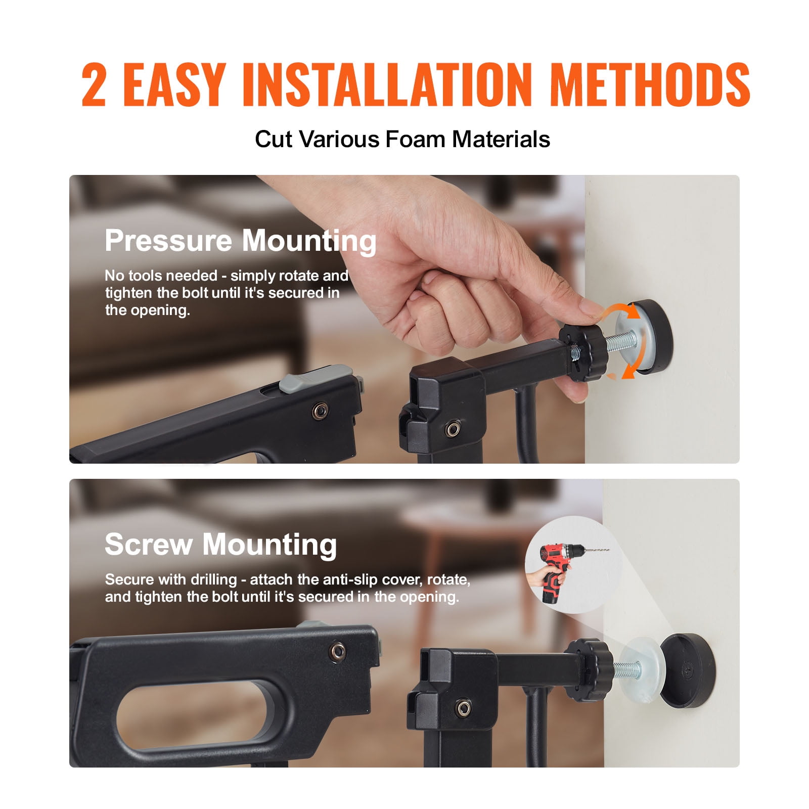$42.99Product Description BENTISM Baby Gate – Guardian of Your Little One Boasting a wider door design, dual installation options (pressure & hardware mounting), and adaptability across various spaces, this wide baby gate is a game-changer. It keeps your walls unscarred and moves around flexibly, ensuring your baby’s security at all times. The top-to-bottom double lock is a breeze for adults yet a fortress against the playful antics of kids and pets. Guardian of Your Little One Every family with a bundle of joy needs our baby gate. Expandable to fit varying door sizes, it promises a secure environment for both your toddlers and furry pals. Smart Dual-Lock Tech Our dog gate rocks a dual-lock system so simple it’s genius. Adults can easily swing it open with just one hand. It’s child and pet-proof, curbing those mischievous escape attempts. Designed for Convenience & Security With an opening width greater than 21 inches, strollers breeze through without a hitch. Standing tall at 30 inches, our stair gate ensures little adventurers and excited pets don’t leap over. Upgraded No-Drill Installation Choose between pressure or hardware mounting. The pressure mount spares your walls from drills and can be set up and taken down with ease. Stairs? We recommend the hardware option. Versatile Uses Galore Stairs, bedrooms, front doors, kitchens – this child gate’s got it covered. Keep your little ones safely away from stairs and potential hazard zones. Two Trendy Shades Our puppy gate series comes in two chic colors – classic black and pristine white. Choose the one that complements your home décor. Not only is it childproof, but it also amps up your interior aesthetics. Specifications Item Model Number: B3336 Width Range: 29.5 – 48.4 inches/749 – 1229 mm Angle: 180° Height: 30 inches/762 mm Latch Mechanism: 3-Step Opening, Bottom Automatic Locking Material: Iron (Powder-Coated) + Plastic Color: Black Net Weight: 10.8 lbs/4.9 kg Latch Handle: Dual-Lock Tongue Structure, ABS Bar Spacing: 2.1 inches/53 mm Door Opening Width: >21 inches/533 mm Tensile Strength: >45 lbs/20 kg Impact Resistance: 33 lbs/15 kg Package Content 1 x Baby Gate with Accessory Kit