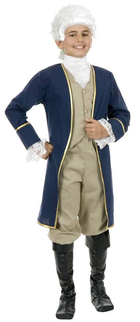 $41.27Celebrate Independence Day in style this year. Start by dressing your boy in the George Washington Childrens Costume. It includes pants, coat, vest and cuffs. Also included is a jabot, a decorative accessory worn at the neck that was popular in colonial times and a must-have for any forefather outfit.