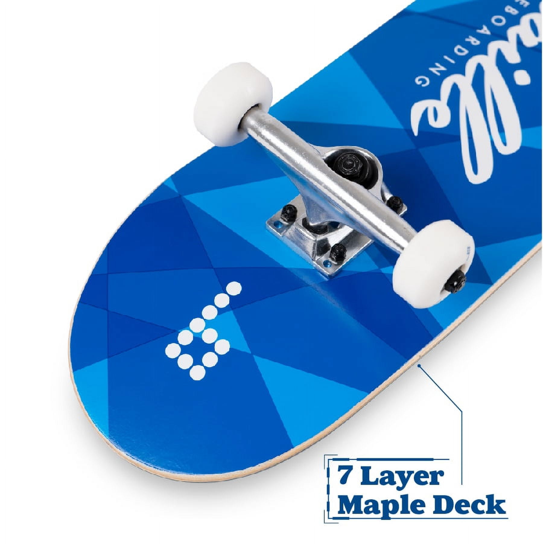 Braille Skateboarding – Blue, 31 In. x 7.75 In. Complete Skateboard, with 7-Ply Maple Deck, and Abec-7 Bearings