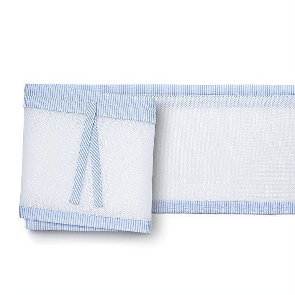 BreathableBaby Breathable Mesh Liner for Full-Size Cribs, Classic 3mm Mesh, Blue Seersucker (Size 4FS Covers 3 or 4 Sides)