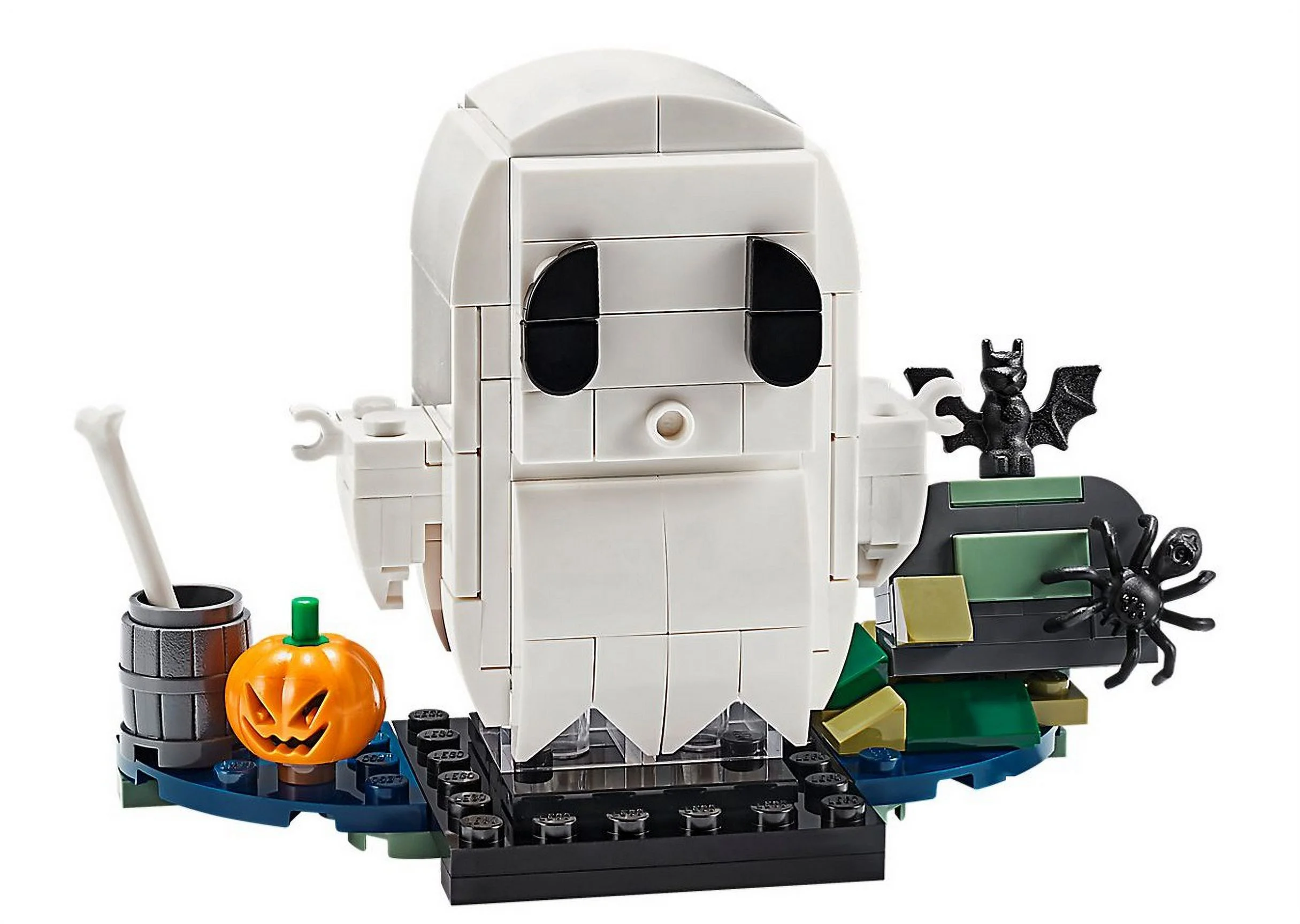 $36.97Add a touch of LEGO® fun to your Halloween decorations when you build and display the LEGO Brickheadz™ 40351 Halloween Ghost. The ghost has transparent tiles at the base to create a floating effect, and it stands on a brick-built, spooky Halloween scene featuring buildable tombstone and jack-o’-lantern, plus bat and spider figures.Features a buildable LEGO® Brickheadz™ ghost with transparent tiles at the base for a floating effect.Also includes a brick-built Halloween scene, including bat and spider figures, a buildable tombstone and jack-o’-lantern, plus bone and barrel elements.Makes a fun seasonal gift for LEGO® fans.Ghost with Halloween scene measures over 3” (9cm) high, 4” (11cm) wide and 1” (5cm) deep.