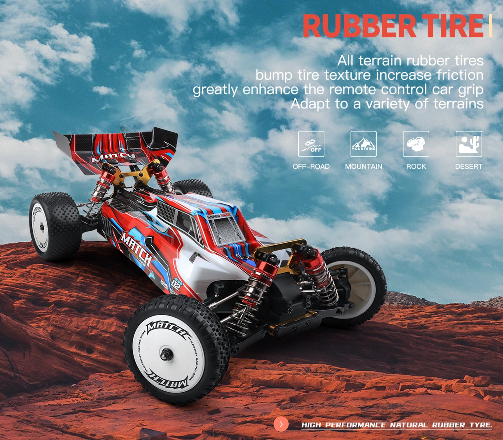 $134.92Original price was: $134.92.$89.43Current price is: $89.43.Wltoys 104001 High-Speed Remote Control Desert Buggy Truck Realistic Driving Experience: With a 1:10 scale and a full simulation structure design, this RC car delivers an authentic driving feeling, complete with high-speed capabilities, instant acceleration, deceleration, and braking. Experience the thrill of control with independent suspension for smooth handling. Powerful Performance: Equipped with a high-rate lithium-ion battery and a potent magnetic motor, this desert buggy truck reaches speeds up to 28 mph (45 km/h), ready to conquer any race. All-Terrain Adventure: Premium all-terrain rubber tires enable unparalleled driving on sand, mud, and grass. Overcome any obstacle with ease. Enhanced Shock Absorption: Featuring hardware hydraulic shock absorbers, this RC car smoothly navigates through rugged terrains, ensuring an uninterrupted racing experience. Durable and Smooth: With an alloy gear differential structure and full-vehicle bearings, it offers a smoother and more stable driving experience, especially when cornering, making it a durable companion for any racing enthusiast. Product Specifications Scale: 1:10 Materials: PA, Electronic Components, Alloy Dimensions: 15.8x10x6.4 inches (L*W*H) Weight: 3.84 lbs Usage Time: About 7 minutes Charging Time: 3 hours Remote Control Frequency: 2.4GHz Motor: 550 carbon brush strong magnet motor Charging Device: 7.4V 1000mA USB charging cable Package Includes RC Car Remote Controller Battery Charging Cable Cross Socket Wrench User Manual Note: For best performance, avoid overcharging or over-discharging the batteries, and keep the RC car away from high temperatures, fire, and water.