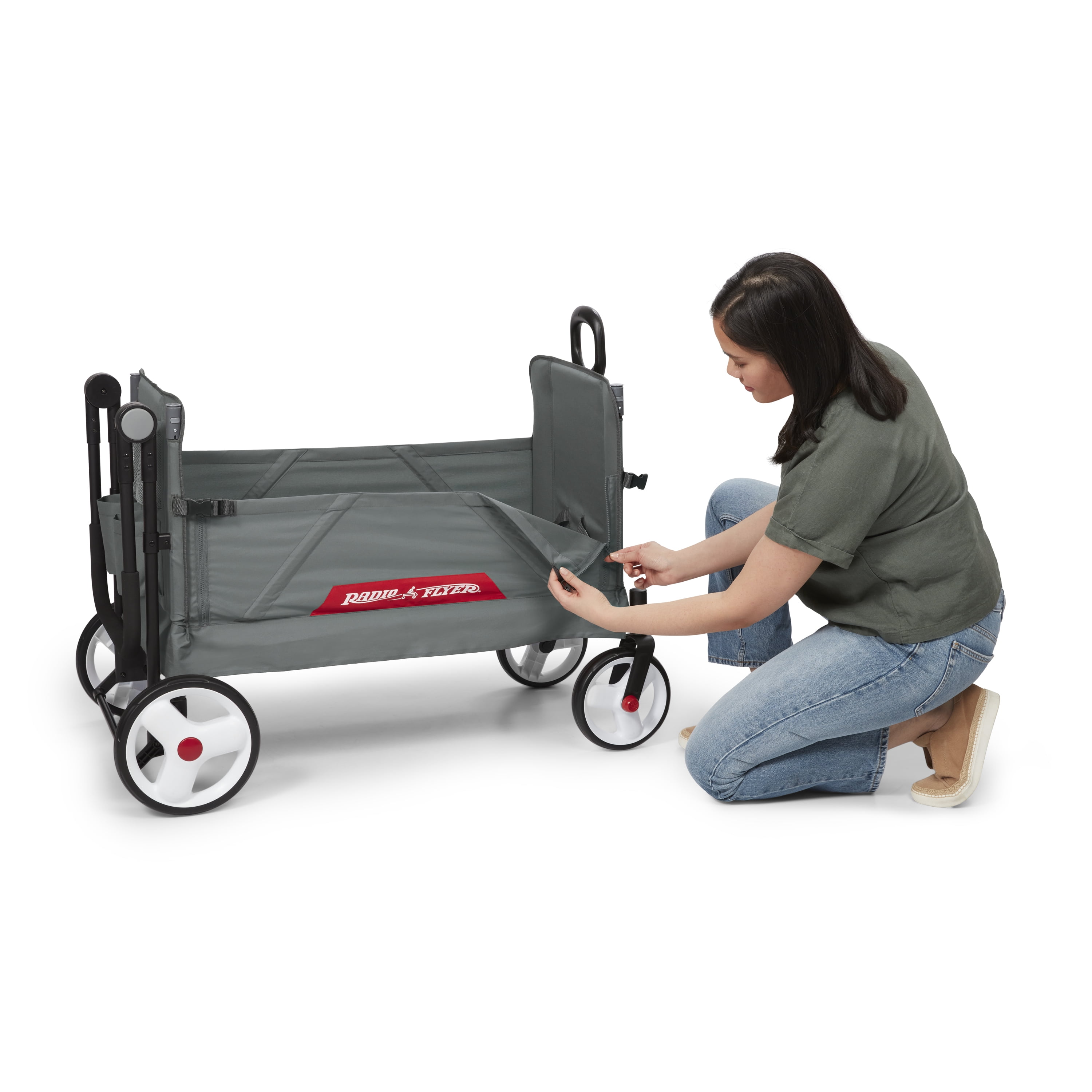 Radio Flyer Compass Kid & Cargo Stroll ‘N Wagon®, Gray Push and Pull Folding Fabric Wagon, for Kids 1 Year and up