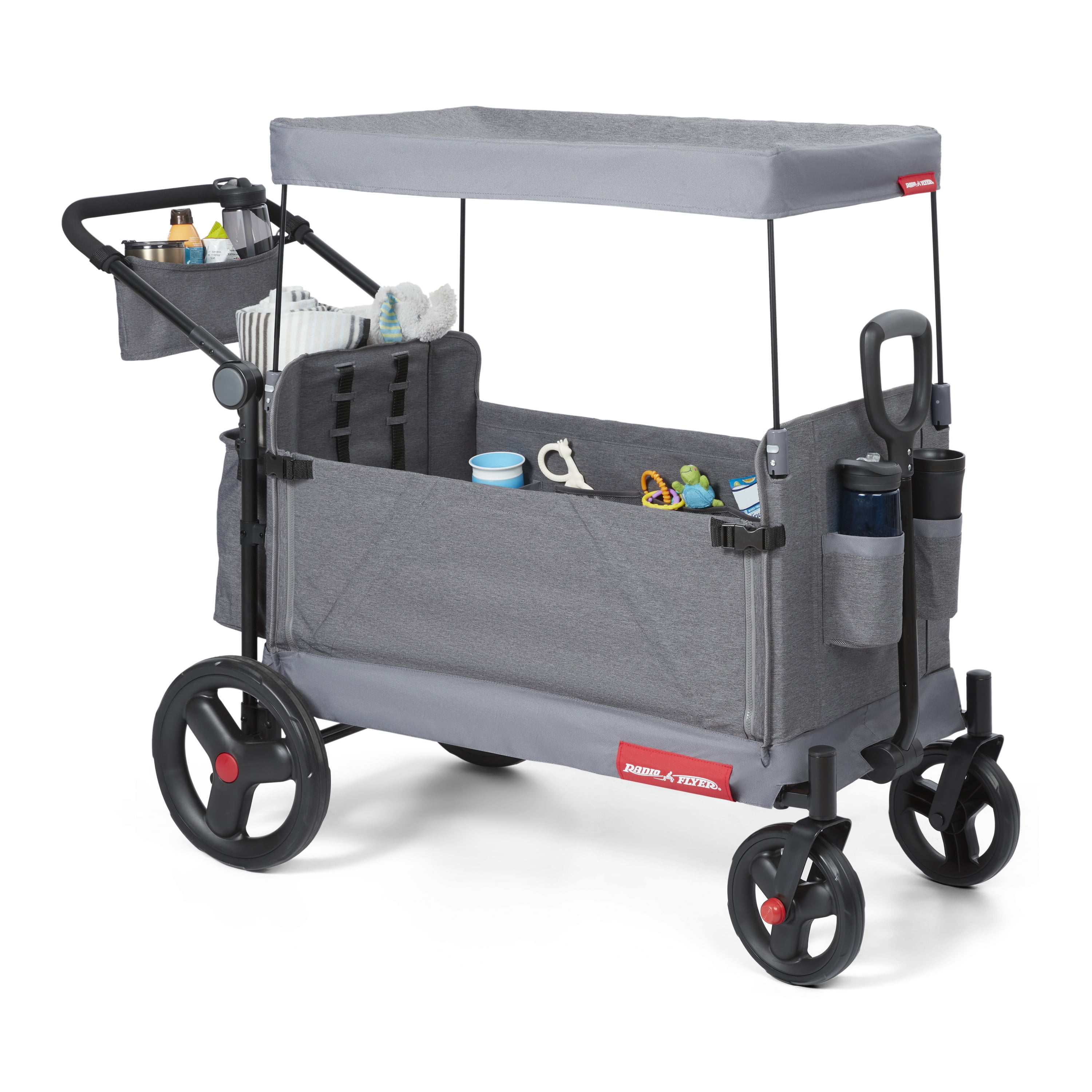 Radio Flyer, Family Wagon with Canopy, Folding Wagon, Light Gray and Red
