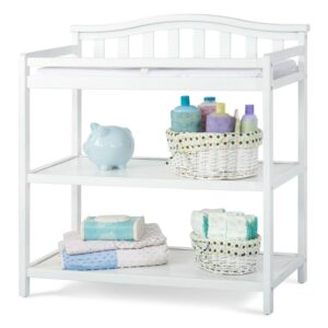 $120.36The Child Craft Curve-Top Infalte Changing Table brings a timeless style and convenient storage to your little one’s nursery. The changing table features a soft arched top and detailed cap rails making it the perfect addition to any nursery style. Two open shelves provide ample storage space and are perfect for storing bedding, toys and all your child’s changing and dressing necessities. Includes water-resistant dressing pad with security belt for additional safety. Quality pine wood and composite construction and a non-toxic finish. Assembly required. Measures 38” H x 19.55” W x 37.2”L, assembled. Mix and match with other Child Craft and Forever Eclectic pieces to create a look that’s perfect for you.