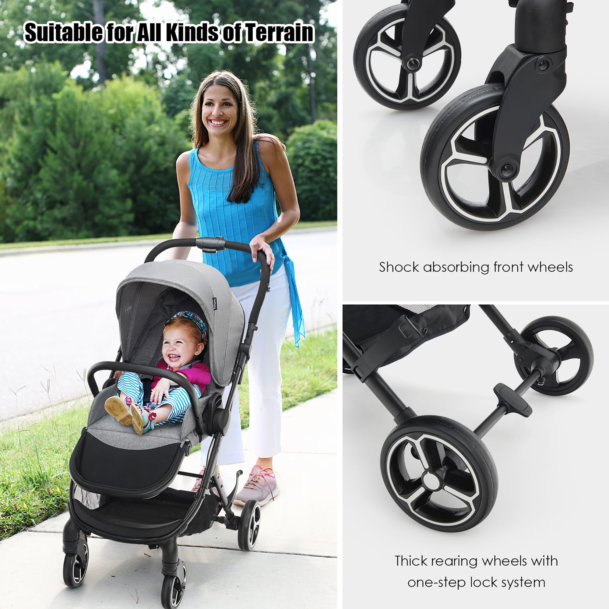 Costway High Landscape Foldable Baby Stroller with Reversible Reclining Seat 20 lbs Gray