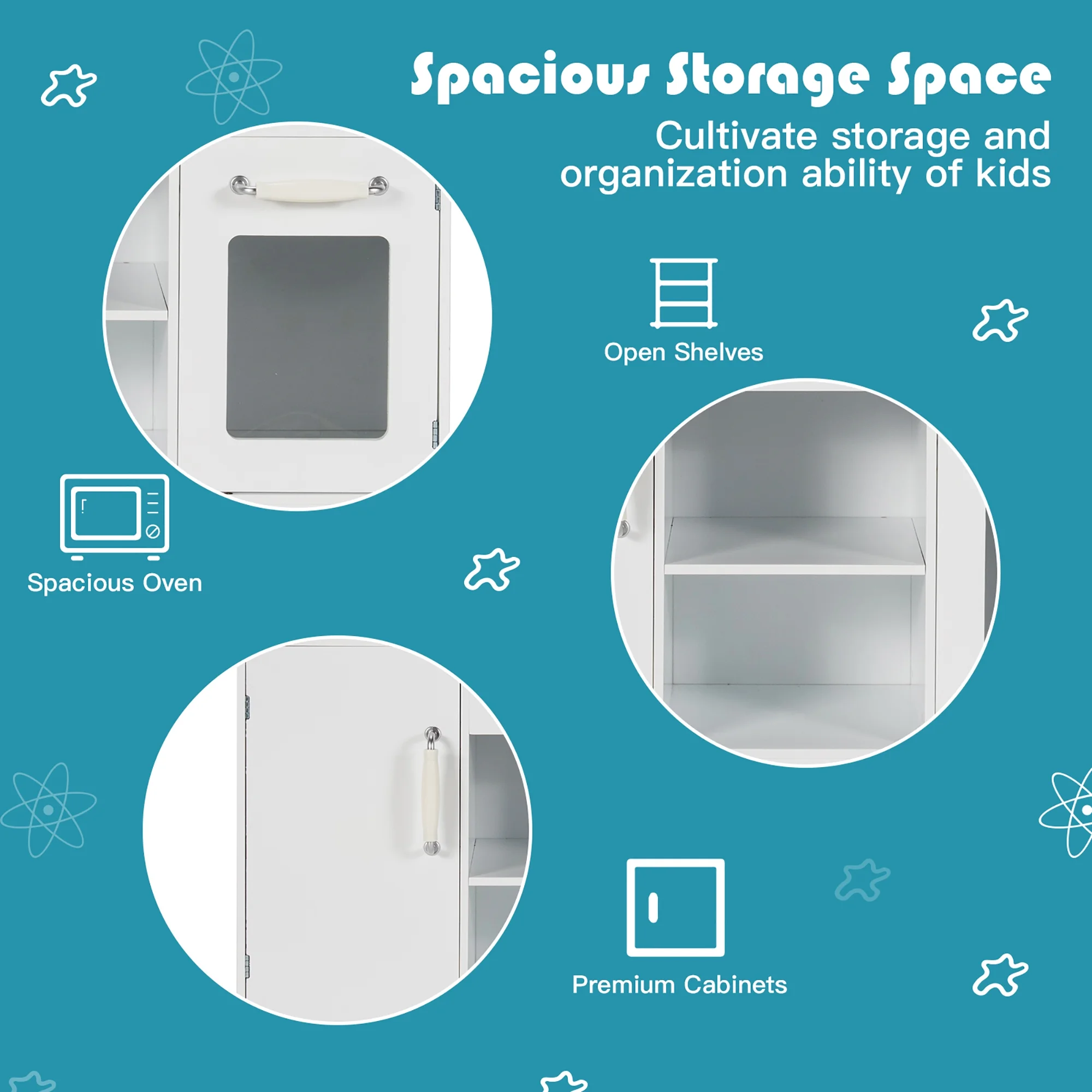 Costway Kids Play Kitchen Set Toddler Pretend Cooking Set w/ Cabinet&Accessories