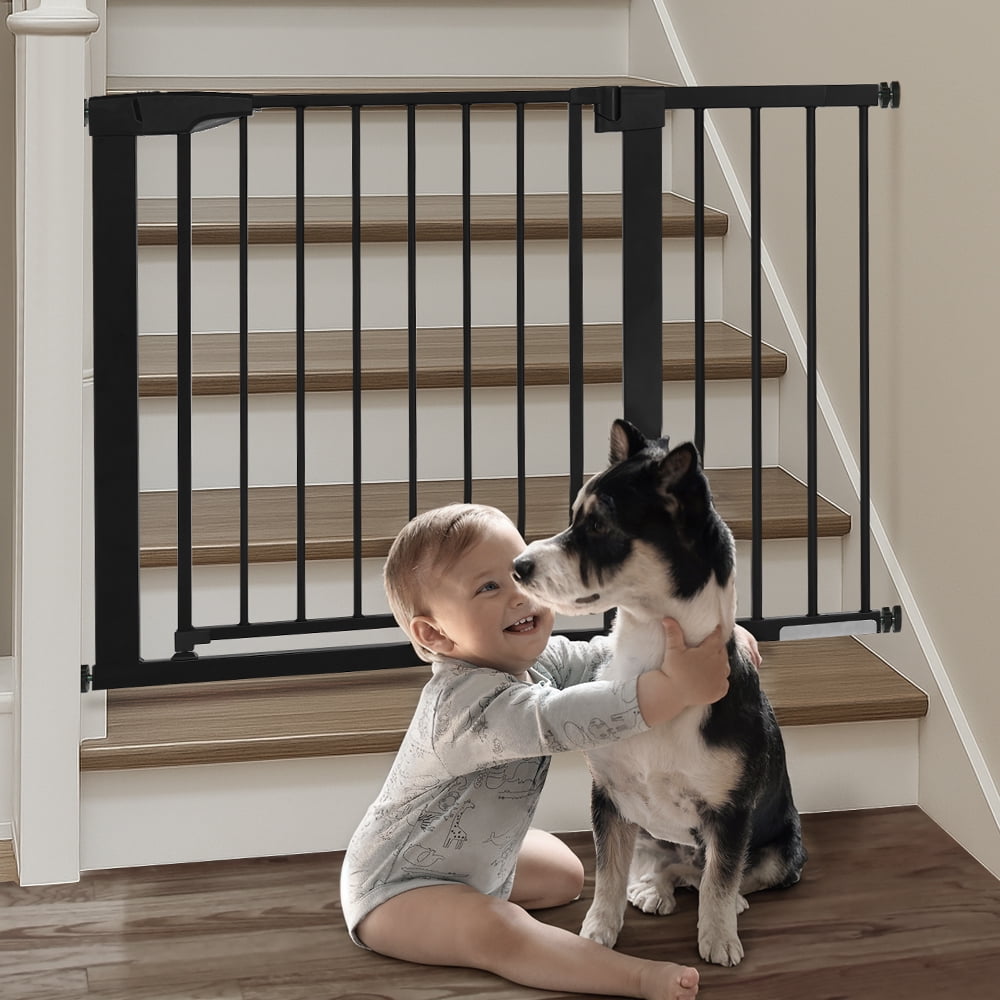 29.5″-43.3″ Caveen Extra Wide Safety Baby Gate for Stairs Doorways, Top of Stairs, Black