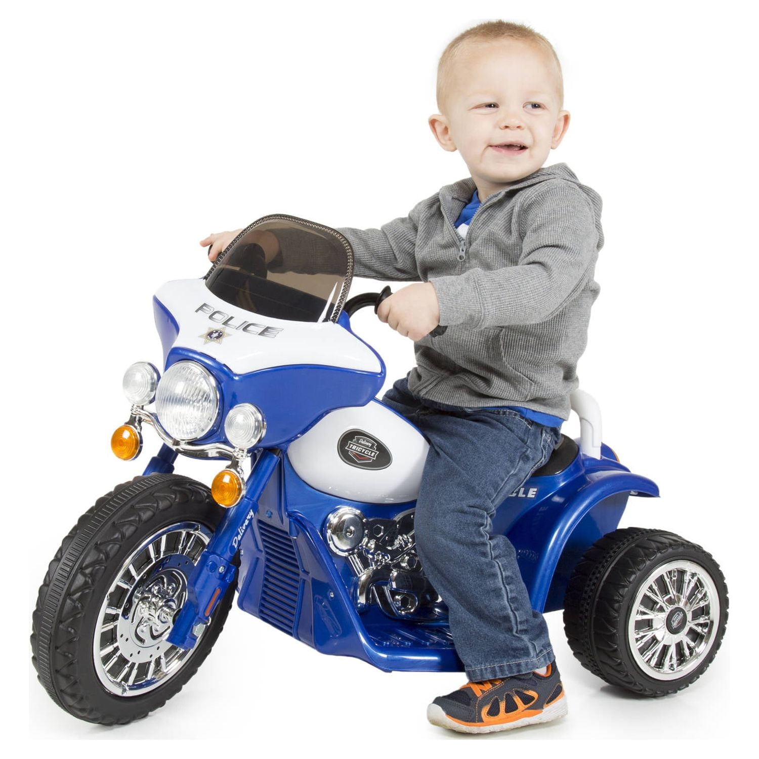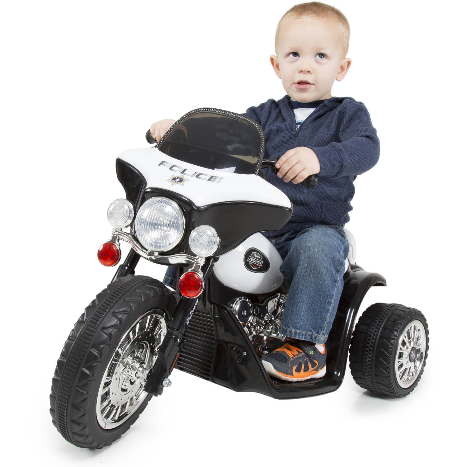 3 Wheel Mini Motorcycle Trike for Kids, Battery Powered Ride on Toy by Rockin’ Rollers – Toys for Boys and Girls, 2 – 5 Year Old – Police Car
