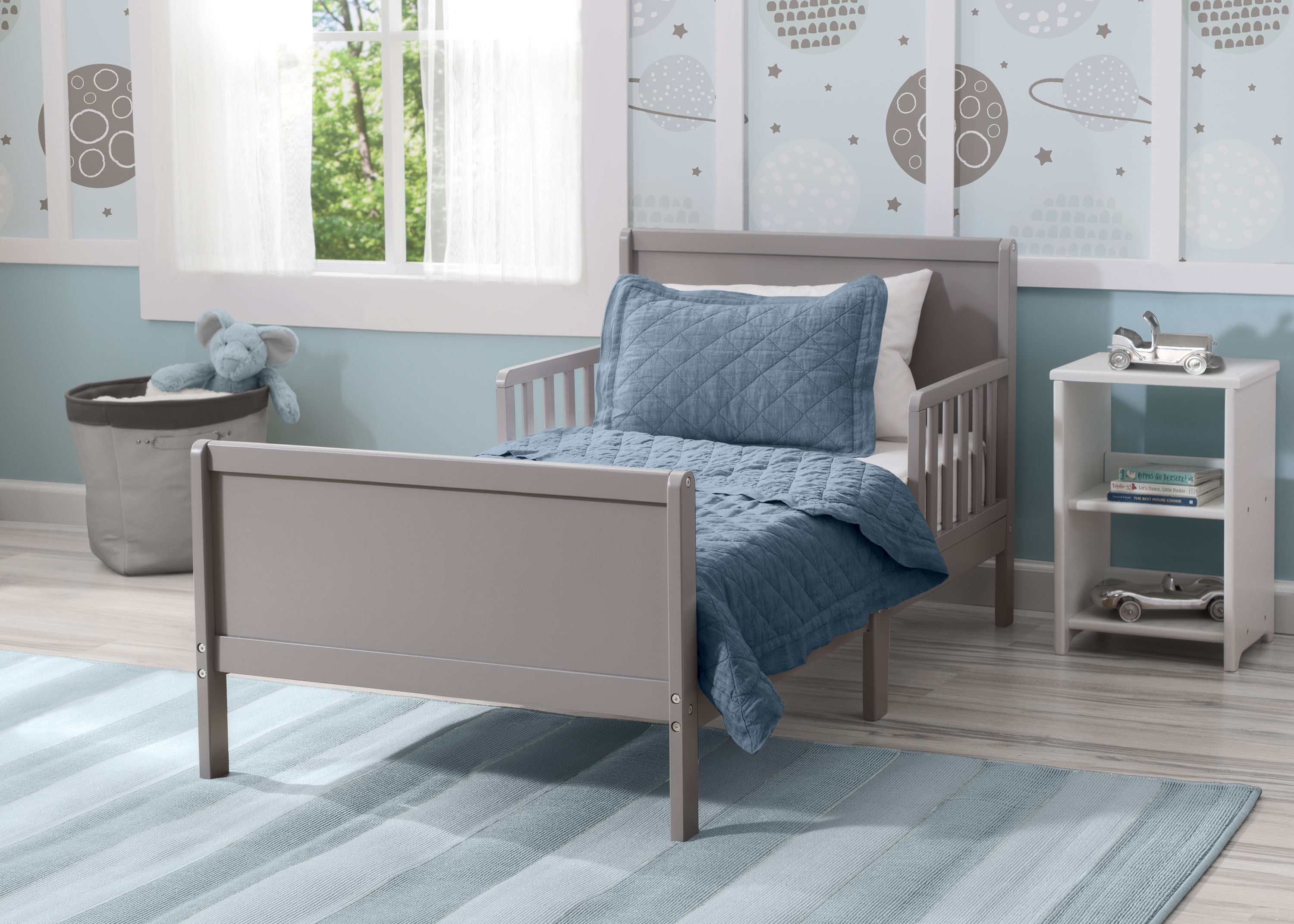 Delta Children Epic Wood Toddler Bed with Attached Guardrails, Grey