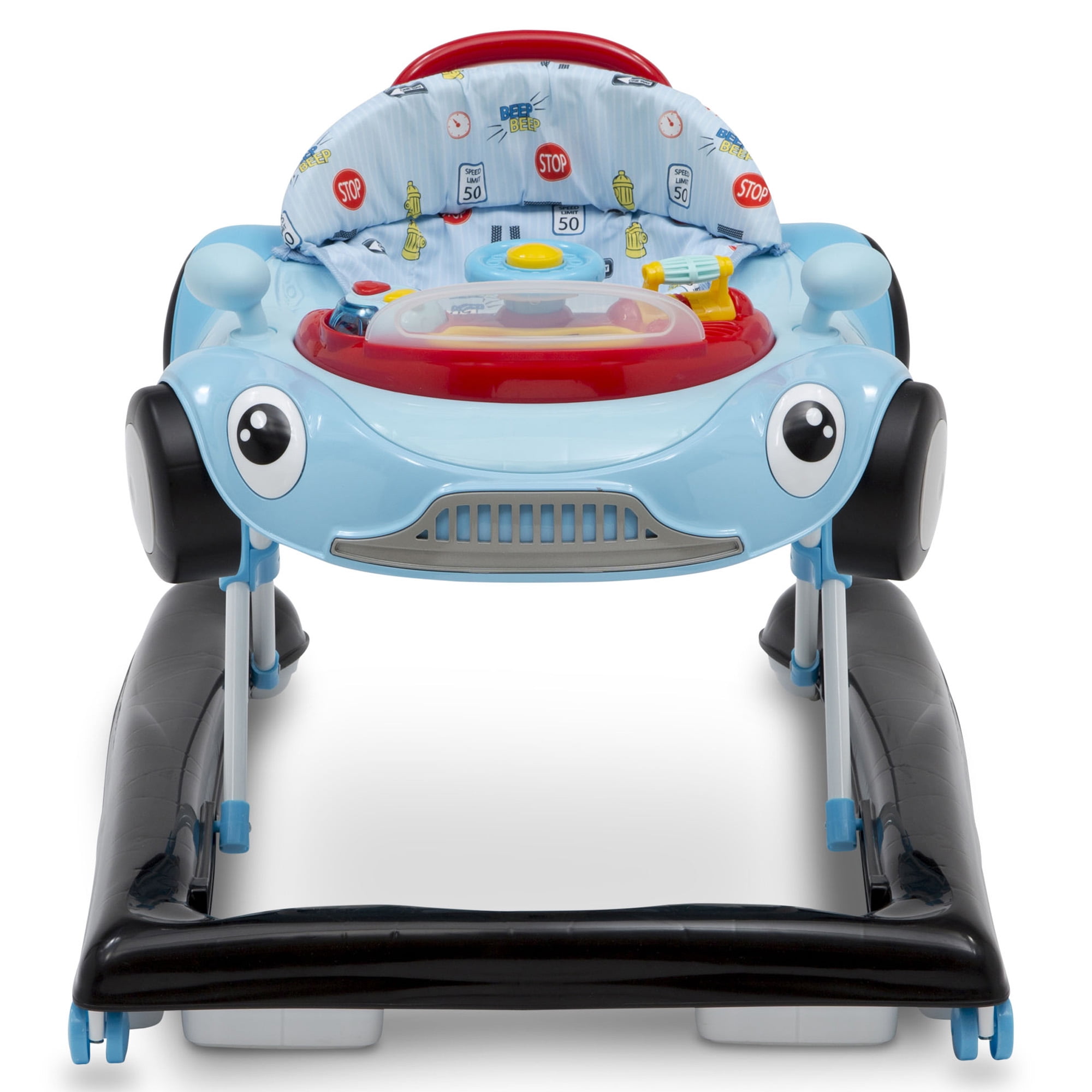 $64.49Baby will be to the races in the First Race 2-in-1 Walker by Delta Children! Designed to stimulate early motor and cognitive skills, it is a perfect choice for your growing child with an innovative, 2-in-1 design that adapts to baby s development. It transitions from an activity walker to a walk-behind walker turning baby s first steps into an adventure of learning and discovery. As an activity walker, baby will enjoy engaging with all of the interactive features and toys from the comfort of the cushioned, high back chair. In the walk-behind mode, the walker s easy-to-grasp handle offers additional support as your child begins to walk on their own. Designed to replicate a race car, this walker s fun features include a movable steering wheel and horn to engage baby s curiosity, stimulating their auditory and visual senses. The removable tray allows baby to take playtime anywhere and when playtime is over, it easily pops the tray to reveal a generously sized eating surface, perfect for snack time. Offering the ideal support at each developmental stage, this walker features a 3-position height adjustment that grows with baby, and the chair cover is machine washable for easy cleaning. Available in Pink or Blue, the First Race Walker makes a great baby gift for boys or girls. Delta Children was founded around the idea of making safe, high-quality children’s furniture affordable for all families. They know there’s nothing more important than safety when it comes to your child’s space. That’s why all Delta Children products are built with long-lasting materials to ensure they stand up to years of jumping and playing. Plus, they are rigorously tested to meet or exceed all industry safety standards. See more