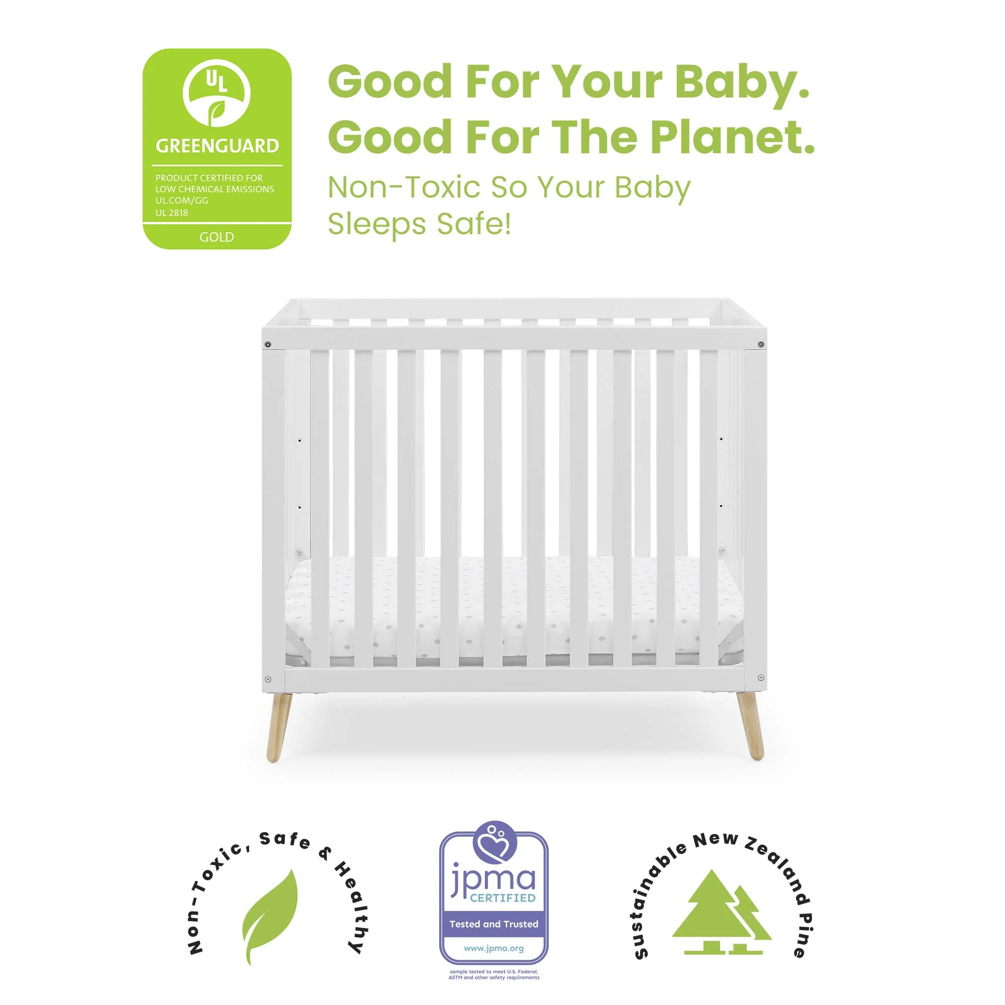 $162.54Original price was: $162.54.$136.74Current price is: $136.74.You’ll love the modern mid-century design vibe of Frankie 4-in-1 Convertible Baby Crib by Delta Children—from the clean lines to the angled stance of the legs. Crafted to last, it’s a piece that baby can use from birth and beyond. This crib features three mattress heights, and converts into a toddler bed, daybed and sofa (Daybed/Sofa Rail Included, Toddler Guardrail #W100825 sold separately). Plus, it’s GREENGUARD Gold Certified, which means it’s built to contribute to cleaner air for a healthy home. Crib mattress sold separately. Delta Children was founded around the idea of making safe, high-quality cribs affordable for all families. That’s why all Delta Children cribs are JPMA certified, and are tested above and beyond industry standards.