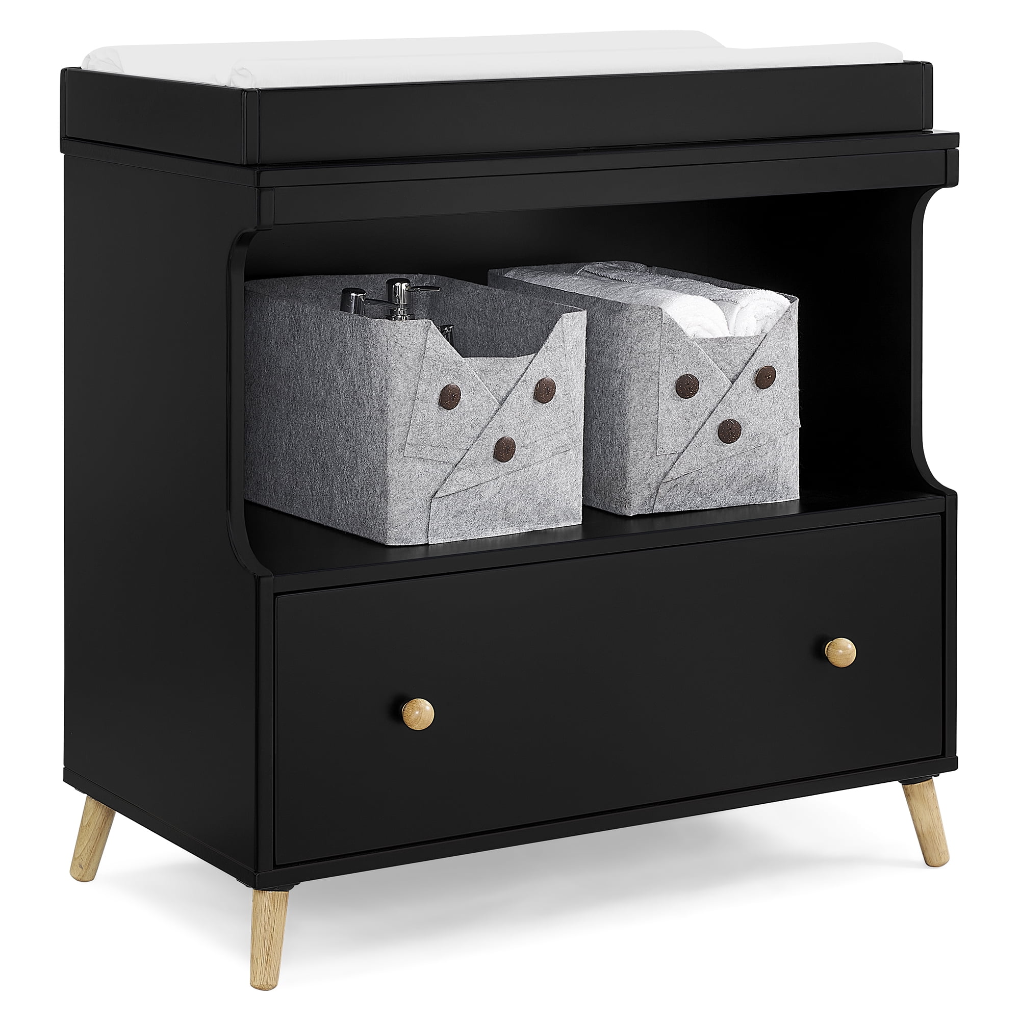 Delta Children Essex Convertible Changing Table with Drawer, Ebony/Natural