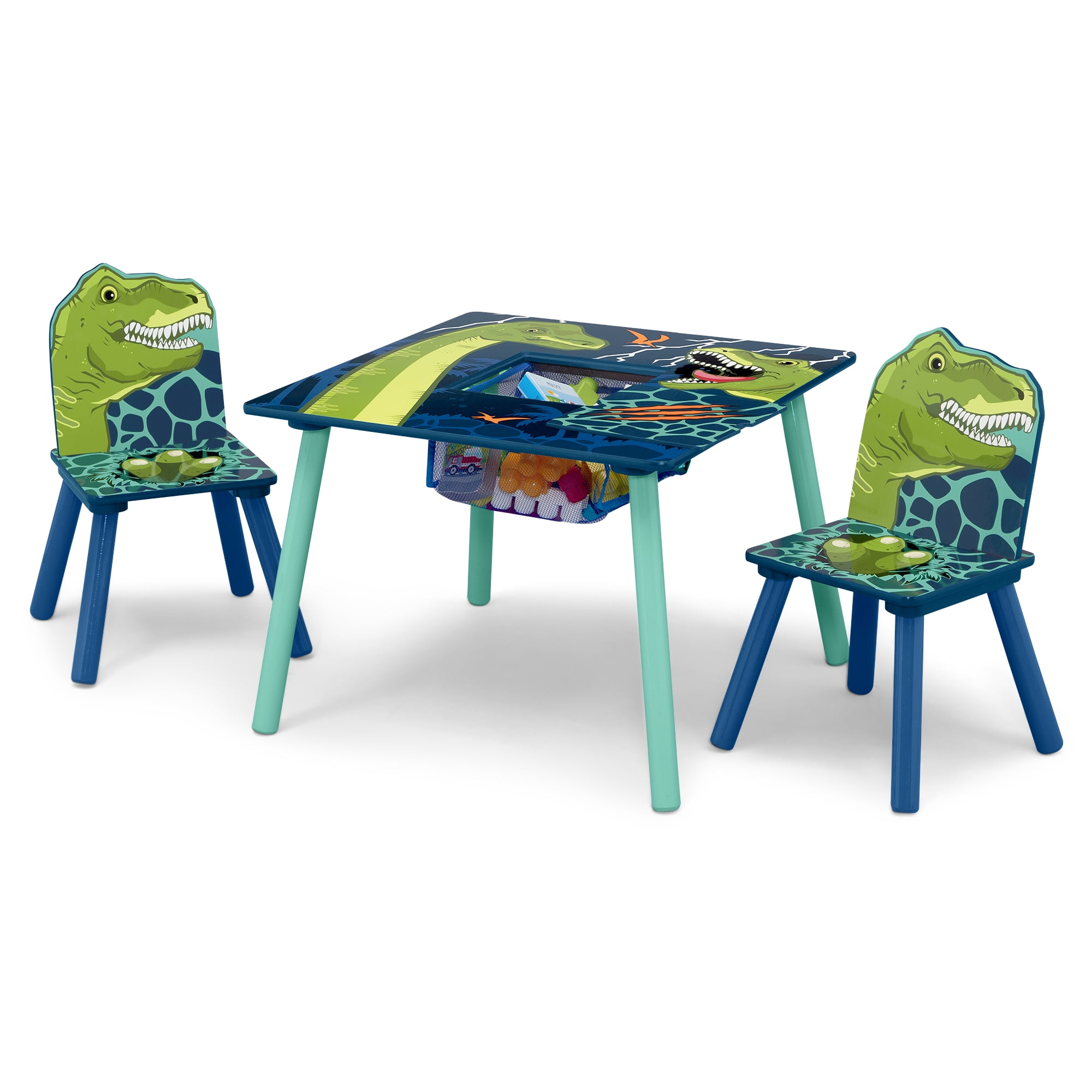 Delta Children Dinosaur Table and Chair Set With Storage (2 Chairs Included) – Greenguard Gold Certified, Blue/Green